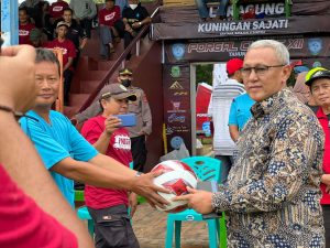 KUNINGAN,- Bupati Kuningan H. Acep Purnama, SH., MH. membuka kegiatan Turnamen Sepak Bola Semi Open antar Desa se-Wilayah Kuningan Timur Porgal Cup ke XII tahun 2022, bertempat di Lapangan Stadion Mashud Wisnusaputra, Minggu (17/7/2022).