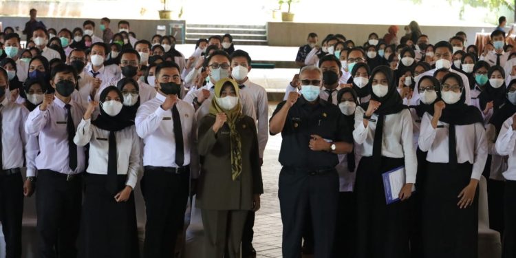 KUNINGAN – Sebanyak 358 Calon Pegawai Negeri Sipil (CPNS) dalam lingkup Pemerintah Kabupaten Kuningan secara resmi dilantik dan diambil sumpah sebagai Pegawai Negeri Sipil (PNS) untuk formasi tahun 2021.