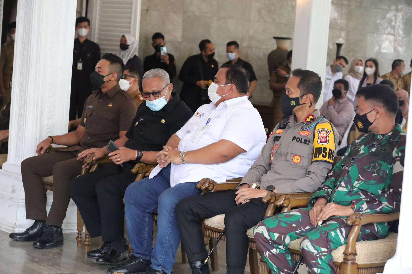 Penyerahan bantuan sembako dilaksanakan di Pendopo Pemkab Kuningan yang dihadiri juga Bupati Kuningan H. Acep Purnama, SH., MH. , Wakil bupati kuningan H. M Ridho Suganda, M. SI. Dandim 0615 Kuningan David Nainggolan, Kepala Kejaksaan Negeri Kuningan Dudi Mulyakusumah, Ketua Pengadilan Negeri Kabupaten Kuningan Ali Sobirin, Sekretaris Daerah Kabupaten Kuningan Dr. H. Dian Rachmat yanuar, M. SI. beserta jajaran juga turut menyaksikan penyerahan bantuan sembako tersebut.