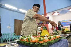 KUNINGAN,- Bupati Kuningan H. Acep Purnama SH MH menghadiri Peringatan Maulid Nabi Muhammad SAW Tahun 2022/1444 Hijriah bertempat di Masjid Nurul Huda, Desa Cibinuang, Kecamatan Kuningan, Kabupaten Kuningan, Jumat (7/10/2022). Kegiatan tersebut diisi dengan Kegiatan Sholawatan bersama dan Lomba Kreasi Tumpeng. Unjuk kreativitas menghias tumpeng lengkap beserta sayur, lauk pauk dengan garnish sebagai penghias yang menjadikan tumpeng indah dan menarik menjadi penilaian penting dalam lomba tumpeng ini, selain juga kekompakan, kebersihan, serta cita rasanya. Bupati Acep Purnama pun ikut Bertindak sebagai dewan juri untuk menilai tumpeng-tumpeng tersebut.