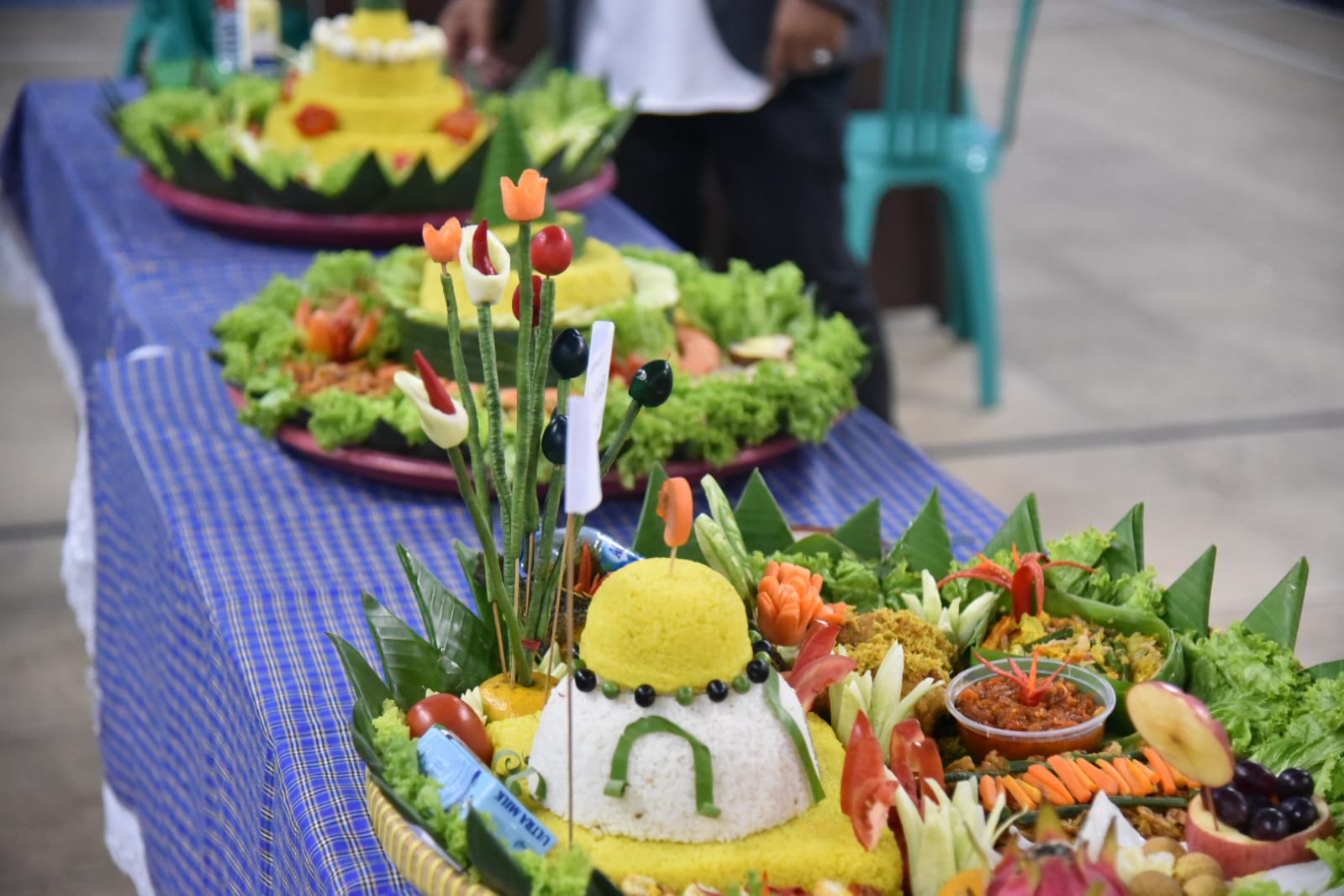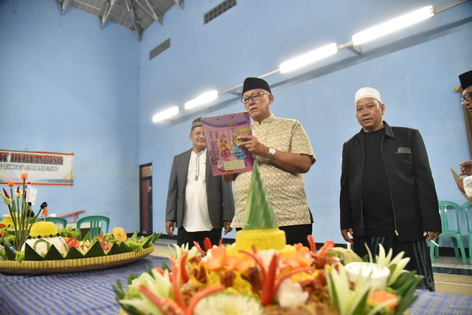 KUNINGAN,- Bupati Kuningan H. Acep Purnama SH MH menghadiri Peringatan Maulid Nabi Muhammad SAW Tahun 2022/1444 Hijriah bertempat di Masjid Nurul Huda, Desa Cibinuang, Kecamatan Kuningan, Kabupaten Kuningan, Jumat (7/10/2022). Kegiatan tersebut diisi dengan Kegiatan Sholawatan bersama dan Lomba Kreasi Tumpeng. Unjuk kreativitas menghias tumpeng lengkap beserta sayur, lauk pauk dengan garnish sebagai penghias yang menjadikan tumpeng indah dan menarik menjadi penilaian penting dalam lomba tumpeng ini, selain juga kekompakan, kebersihan, serta cita rasanya. Bupati Acep Purnama pun ikut Bertindak sebagai dewan juri untuk menilai tumpeng-tumpeng tersebut.