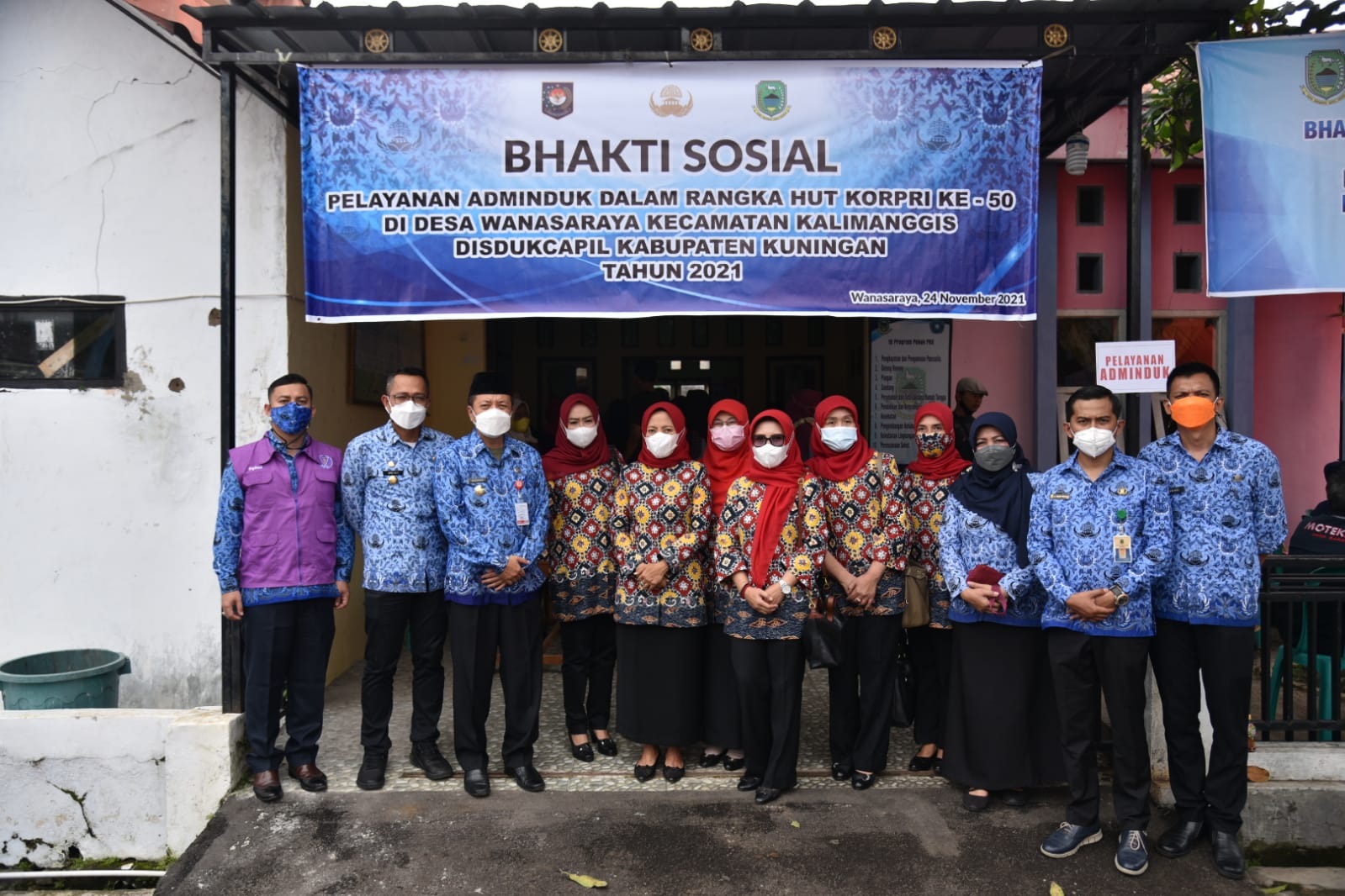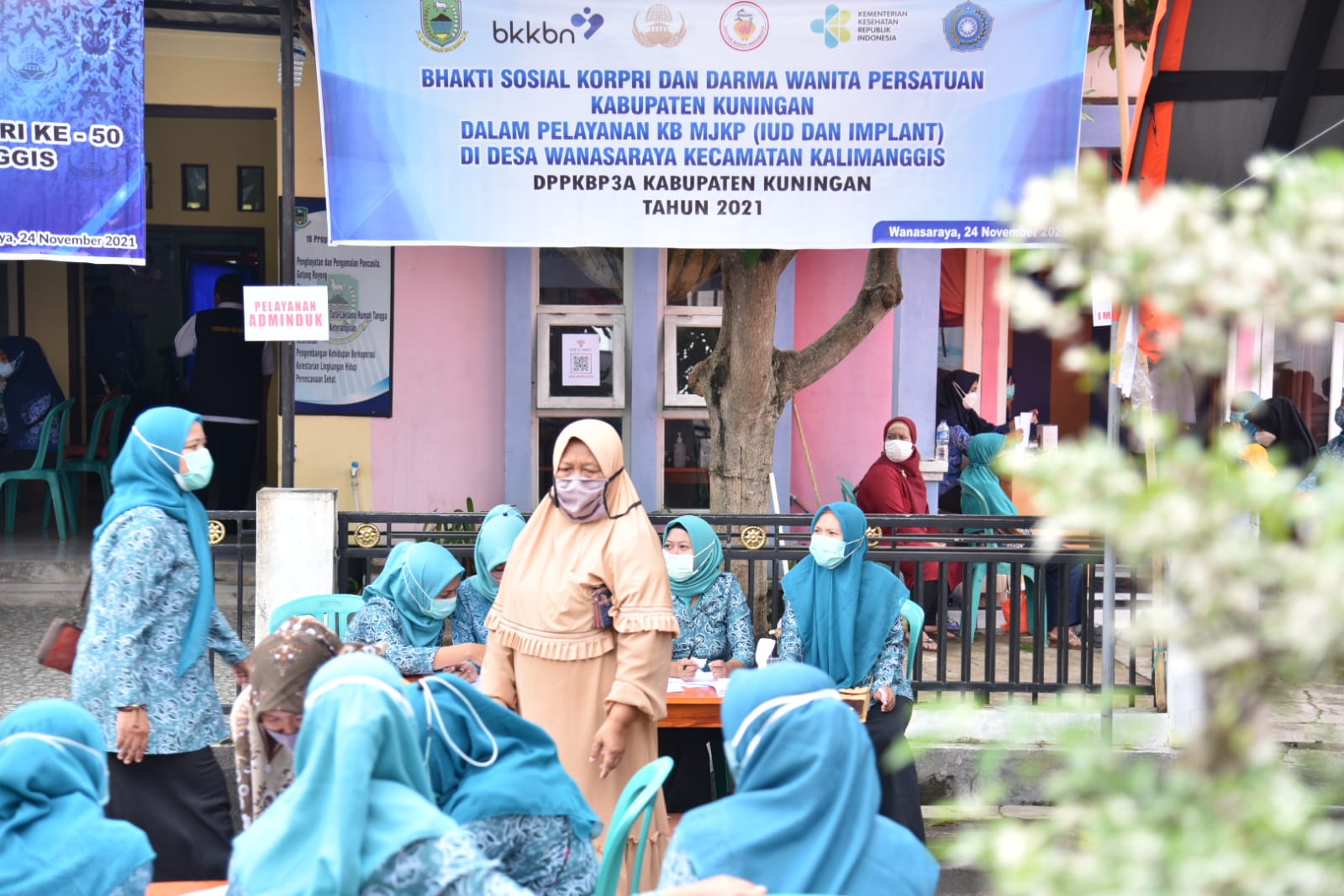 KUNINGAN,- Sebagai bentuk kepedulian DP KORPRI Kabupaten Kuningan terhadap masyarakat tentang pentingnya pelayanan kesehatan dan pelayanan lainnya, dalam Rangka HUT KORPRI ke-50, DP KORPRI Kabupaten Kuningan menyelenggarakan Bakti Sosial, yang bekerjasama dengan Dinas Kependudukan dan Catatan Sipil, DPPKBP3A, Disporapar, Dinas Ketahanan Pangan dan Pertanian, RSUD Linggajati, PMI Kabupaten Kuningan, Jabar Bergerak Kabupaten Kuningan, Dharma Wanita Persatuan Kabupaten Kuningan, dan Persatuan Dokter Gigi Indonesia (PDGI), yang bertempat di Halaman Kantor Kepala Desa Wanasaraya Kecamatan Kalimanggis, (Rabu, 24/11/2021).