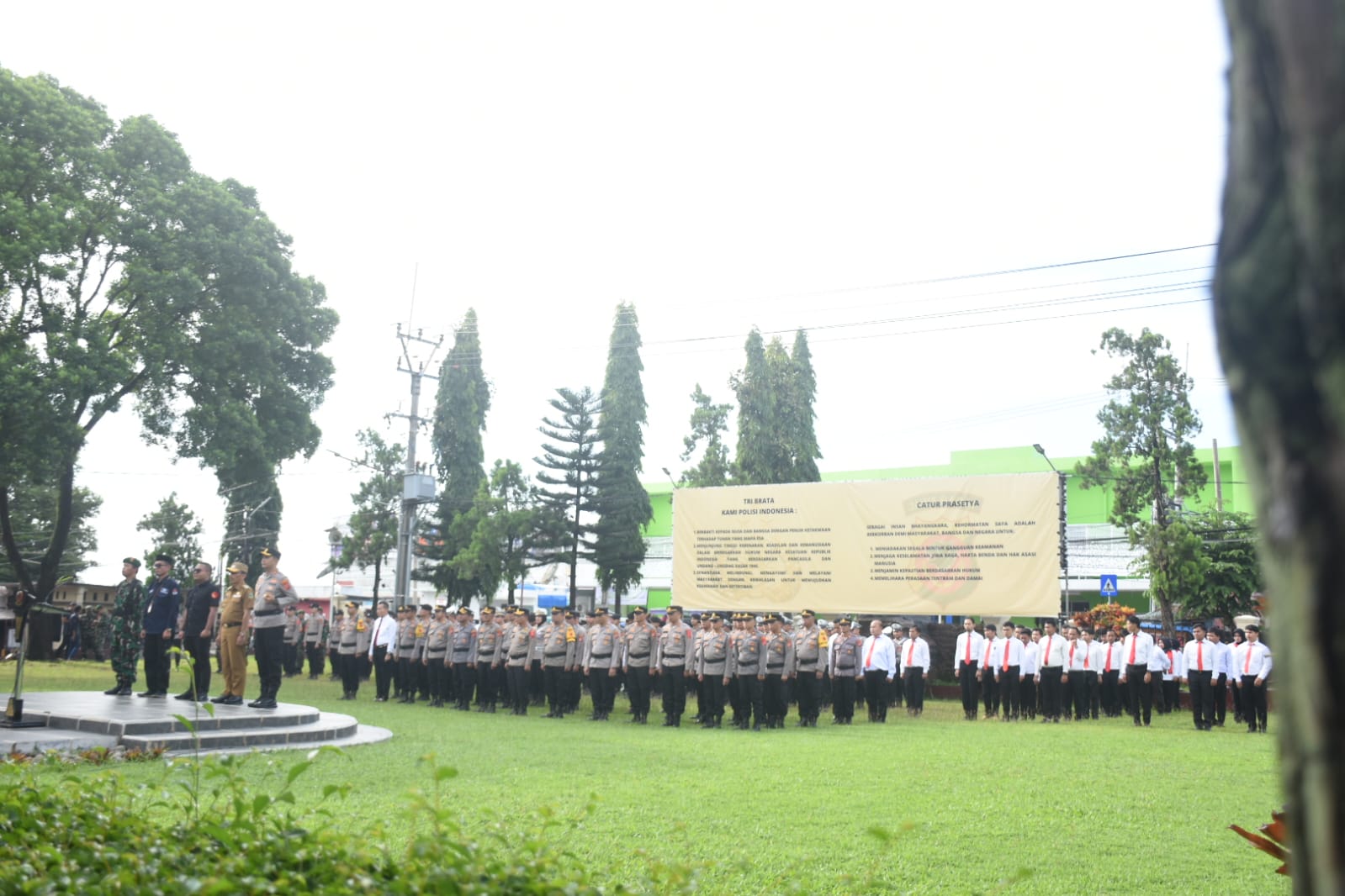 Dilaksanakan secara virtual (zoom meeting), pelaksanaan apel di Kabupaten Kuningan diselenggarakan di halaman Mapolres Kuningan, Senin (12/2/2024) pagi.