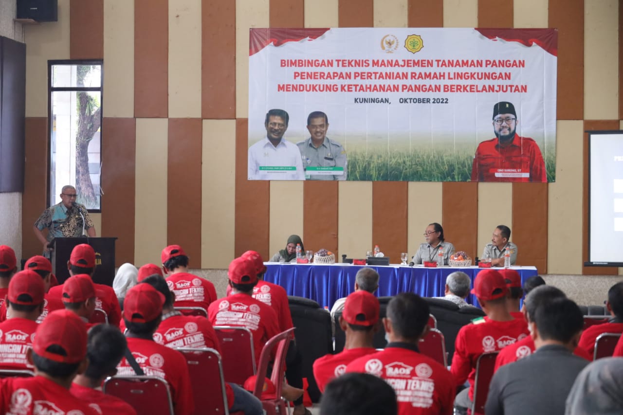Kepala Dinas Ketahanan Pangan Dan Pertanian Kabupaten Kuningan Drs. H. Ahmad Juber, M.Si menyambut baik acara Bimbingan Teknis yang diselenggarakan oleh kementerian pertanian ini, Ia menekankan bahwa 4 sukses pembangunan pertanian yang telah ditetapkan oleh kementerian pertanian, yaitu swasembada dan swasembada berkelanjutan, diversifikasi pangan, meningkatkan mutu, daya saing dan ekspor, serta meningkatkan kesejahteraan petani. Harus didukung oleh semua elemen pertanian dalam hal ini dititik beratkan kepada petugas yang paling memahami kondisi di lapangan.