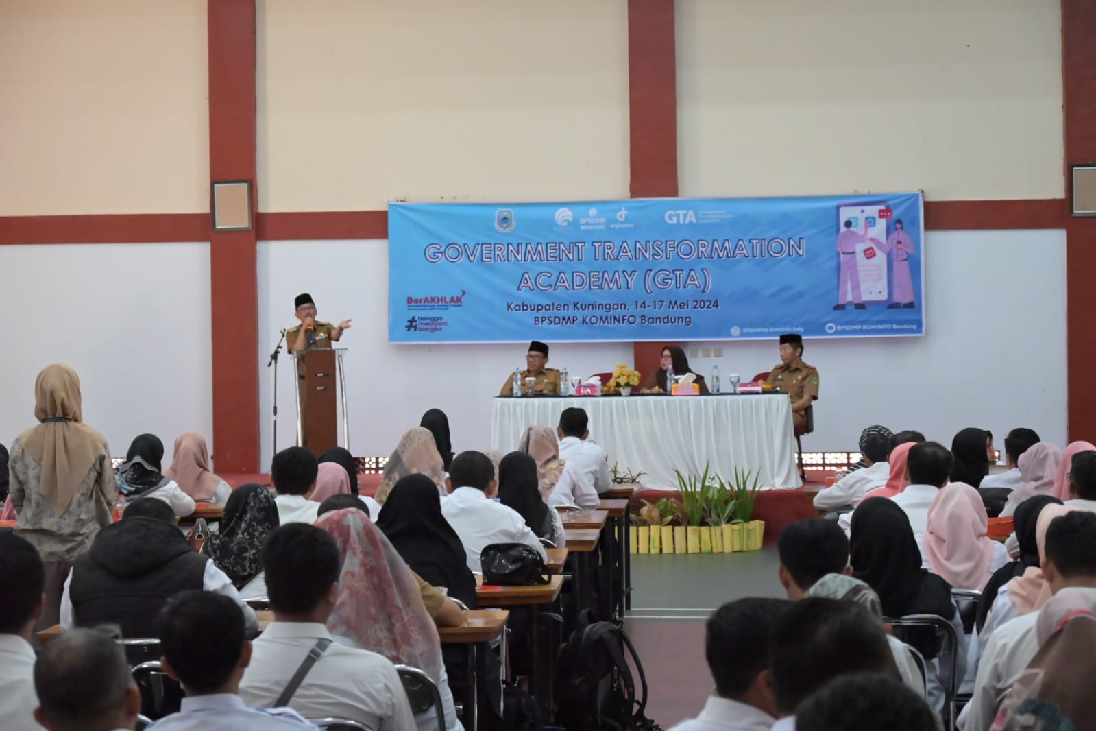KUNINGAN – Dalam rangka meningkatkan kapasitas Aparatur Sipil Negara dalam pengembangan kemampuan teknologi informasi dan Komunikasi, Pemerintah Kabupaten Kuningan melalui BKPSDM yang bekerjasama dengan BPSPDM Kominfo Bandung menyelenggarakan pelatihan bertajuk Government Transformation Academy (GTA).