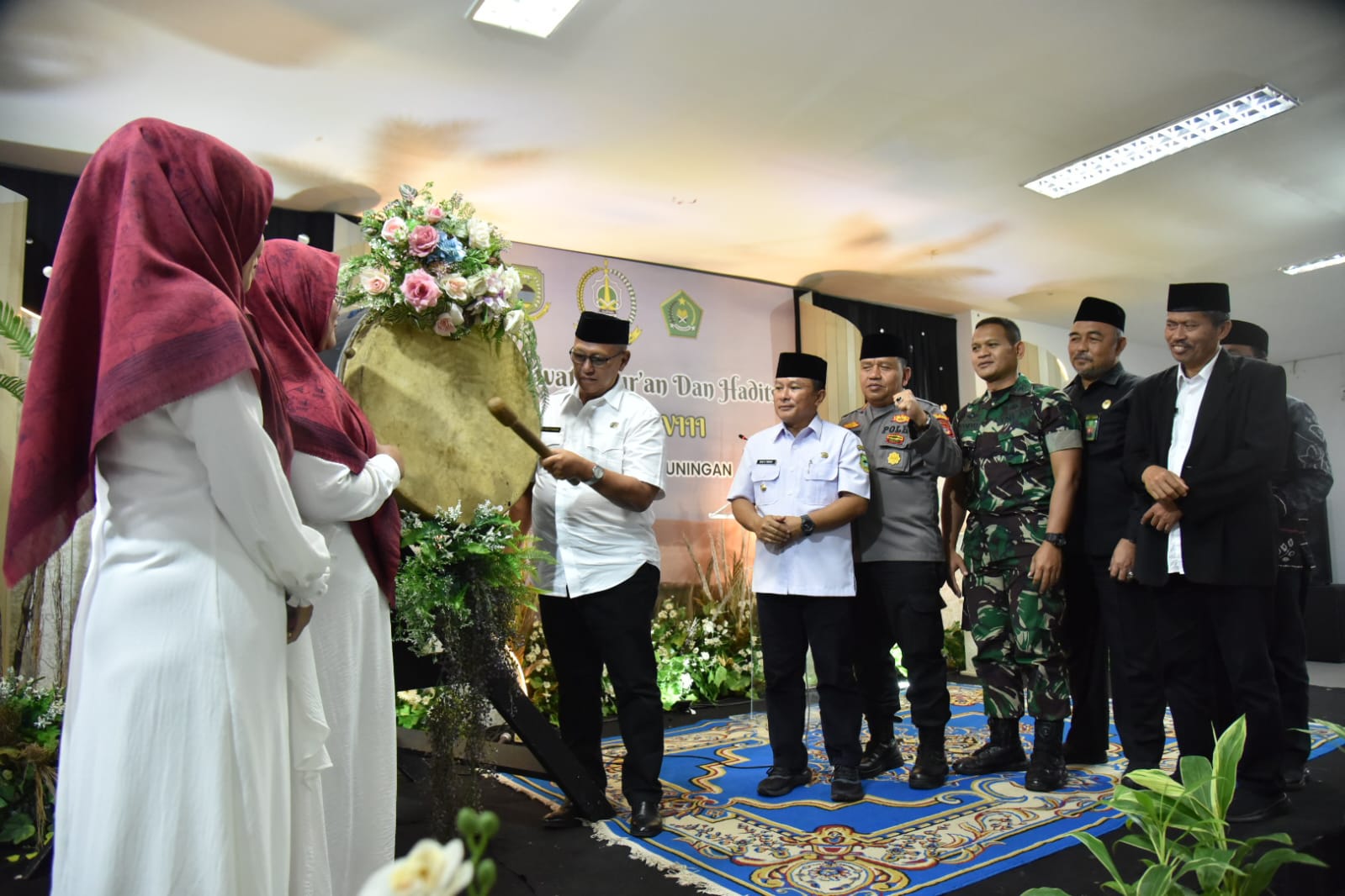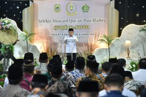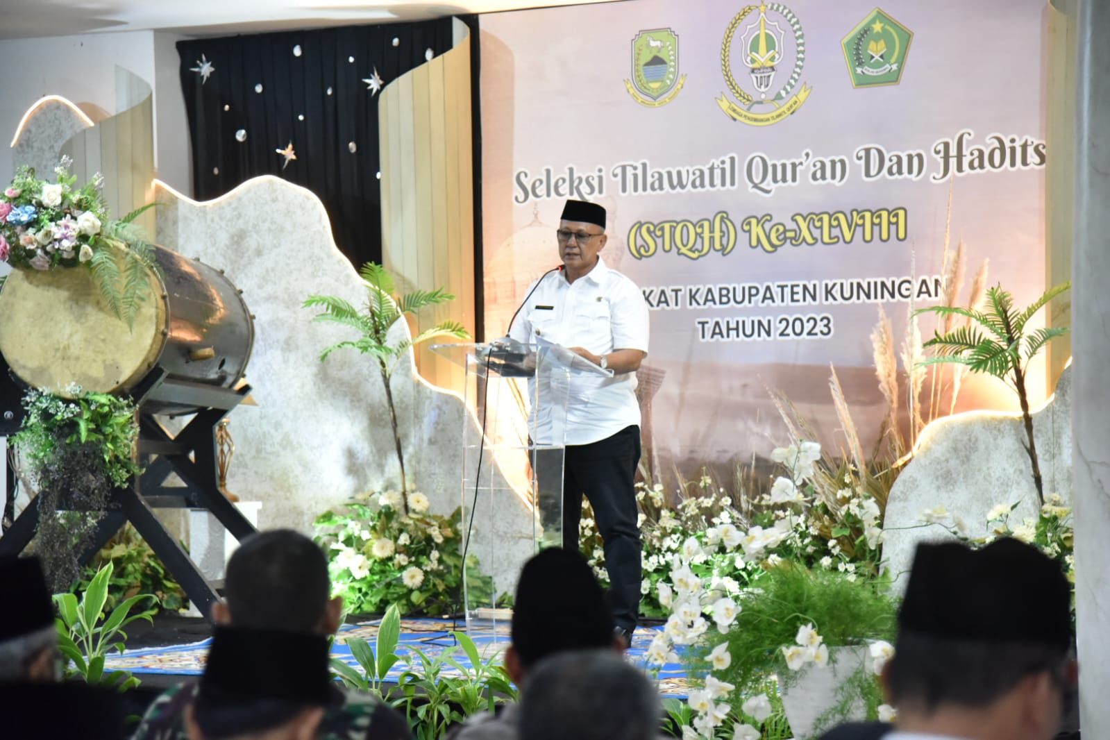 KUNINGAN-Terciptanya Generasi Qur’ani yang Handal dan Berprestasi Menuju Terwujudnya Kuningan Maju menjadi tema Tilawatil Qur’an dan Hadist (STQH) ke 48 tingkat Kabupaten Kuningan Tahun 2023. Acara tersebut dibuka Bupati Kuningan H. Acep Purnama, SH., MH, bertempat di Aula Islamic Center Kuningan (KIC). Rabu (08/03/2023).