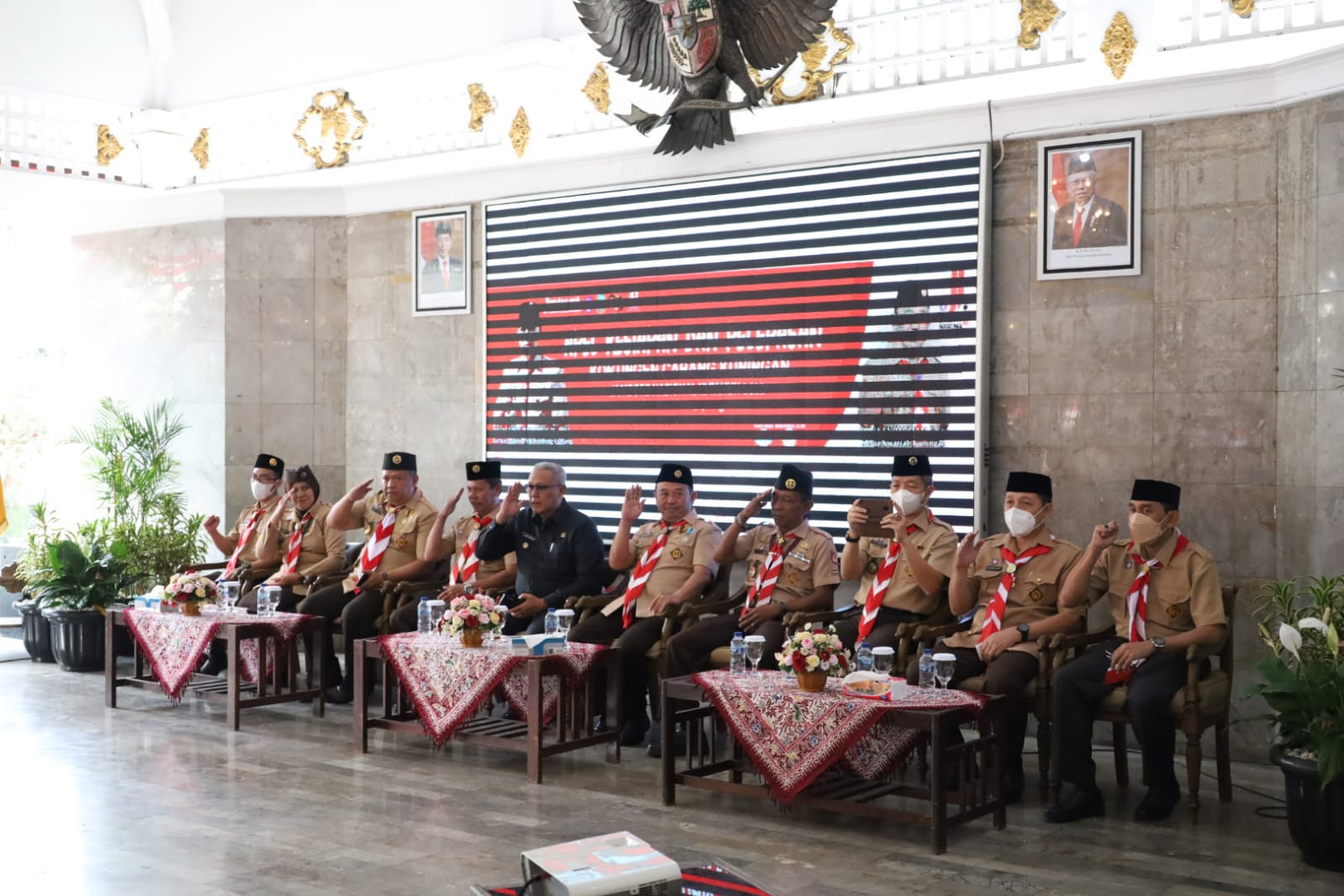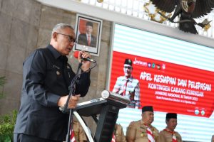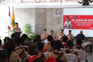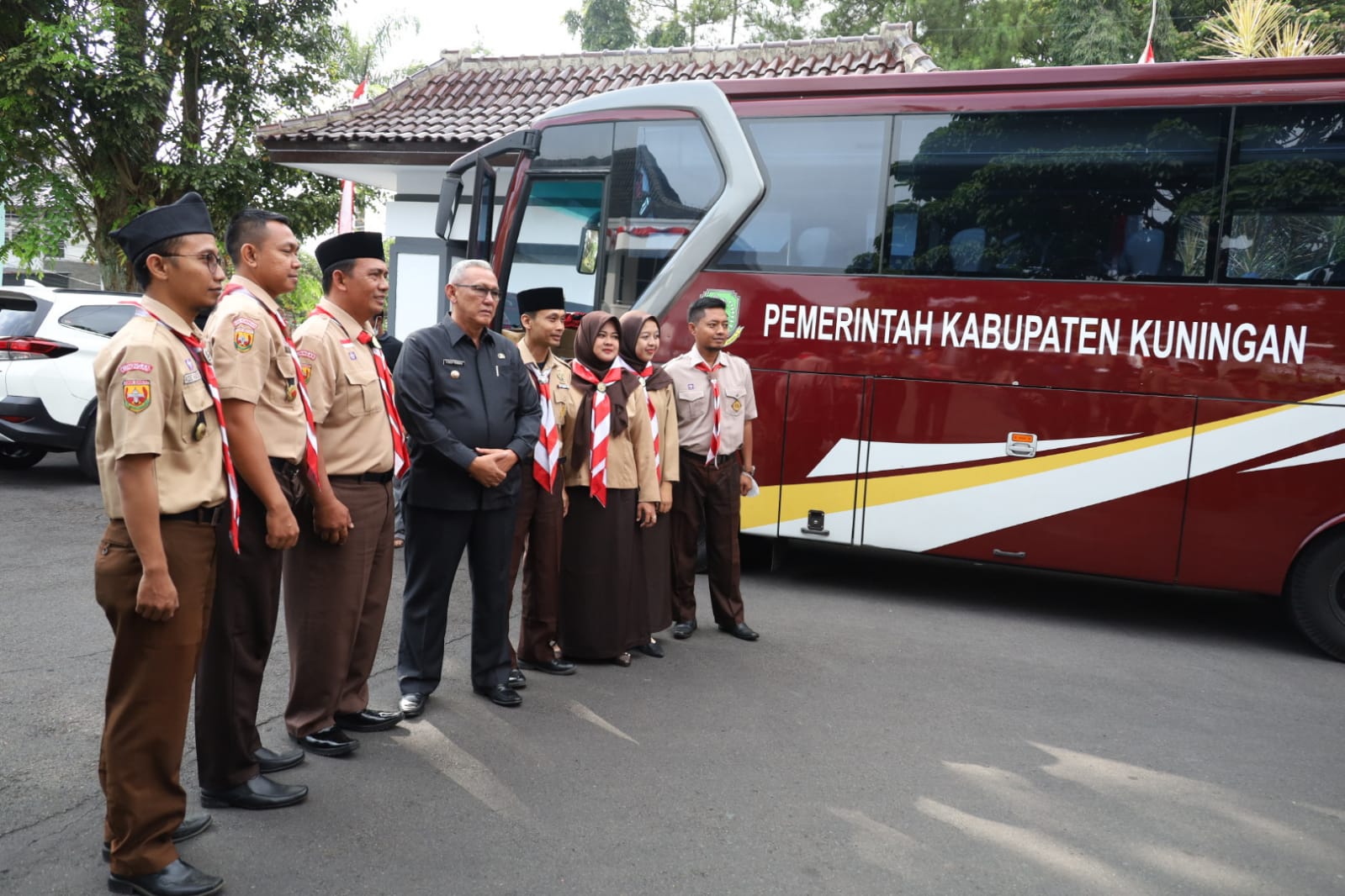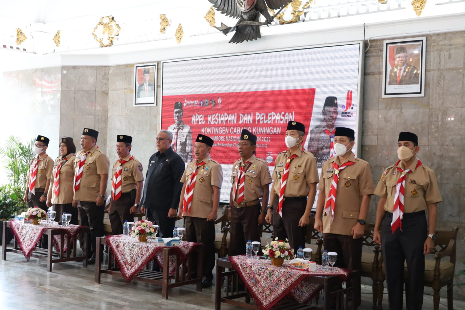 KUNINGAN,- Pendopo Setda Kabupaten Kuningan, Jumat (12/8/2022). Bupati Kuningan H. Acep Purnama selaku Majelis Pembimbing Cabang Gerakan Pramuka (MABICAB) melepas Kontingen Pramuka Kwartir Cabang (Kwarcab) Kabupaten Kuningan untuk mengikuti Jambore Nasional XI 2022.
