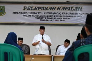 KUNINGAN – Kafilah Musabaqah Qiraatil Kutub (MQK) Kabupaten Kuningan siap melaju ke Kabupaten Bandung untuk mengikuti penyelenggaraan MQK tingkat provinsi Jawa Barat. Pada hari Minggu (04/05/2023), diadakan acara pelepasan di Komplek Islamic Centre Kuningan untuk menghormati para santriwan dan santriwati terpilih yang menjadi bagian dari kafilah mewakili Kuningan.