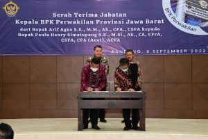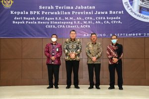 BANDUNG,- Bupati Kuningan H. Acep Purnama SH.,MH menghadiri Serah Terima Jabatan Kepala Perwakilan. Jabatan Kepala BPK Perwakilan Provinsi Jawa Barat, bertempat di Auditorium Lantai 5 Kantor BPK Perwakilan Provinsi Jawa Barat, Kamis (8/9/2022). Telah dilaksanakan Serah Terima Jabatan Kepala Perwakilan. Jabatan Kepala BPK Perwakilan Provinsi Jawa Barat tersebut beralih dari Arif Agus S.E., M.M., Ak., CPA., CSFA. kepada Paula Henry Simatupang S.E., M. Si., Ak., CA., CFrA., CSFA., CPA (Aust), ACPA. Sebelumnya, Paula Henry merupakan Kepala BPK Perwakilan Provinsi Sulawesi Selatan. Sementara, Arif Agus akan berpindah tugas dan menjabat sebagai Kepala BPK Perwakilan Provinsi Sumatera Barat.