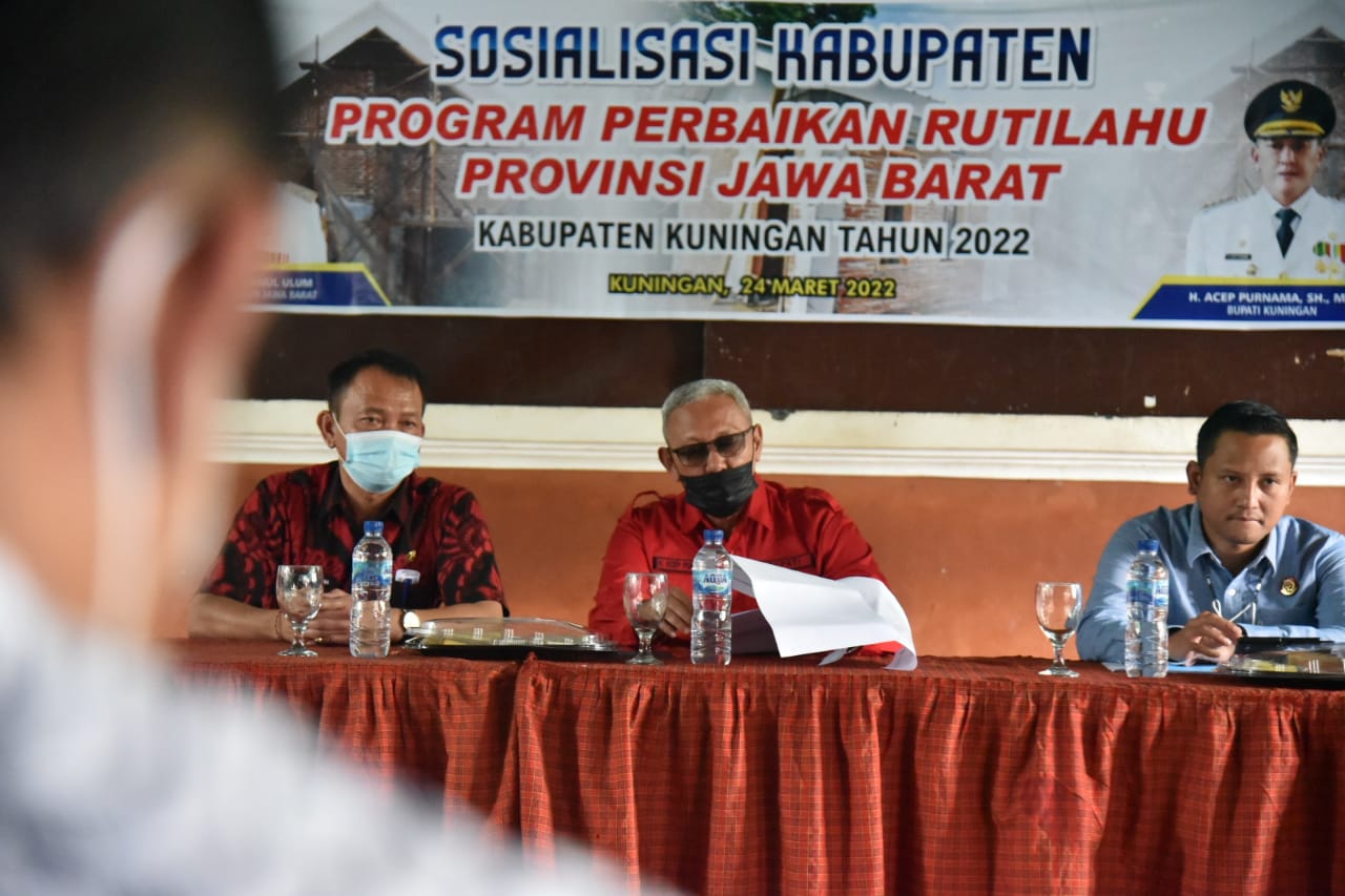 Bupati Kuningan H. Acep Purnama, SH.,MH dalam arahannya menyampaikan bahwa melalui penyelenggaraan Acara Sosialisasi Kabupaten ini merupakan acara yang sangat strategis dan sangat penting dalam rangka kita semua menyamakan pemahaman dan persepsi bersama terhadap pelaksanaan program perbaikan rumah tidak layak huni (rutilahu). Sehingga pada pelaksanaan nya nanti, para pihak yang terlibat baik dari masyarakat penerima manfaat, Para Anggota LPM, Tim Teknis Desa, Fasilitator, Unsur Muspika dan tim teknis kabupaten dapat melaksanakan program rutilahu ini sesuai dengan aturan yang dituangkan dalam petunjuk teknis dan petunjuk pelaksanaan program rutilahu ini.