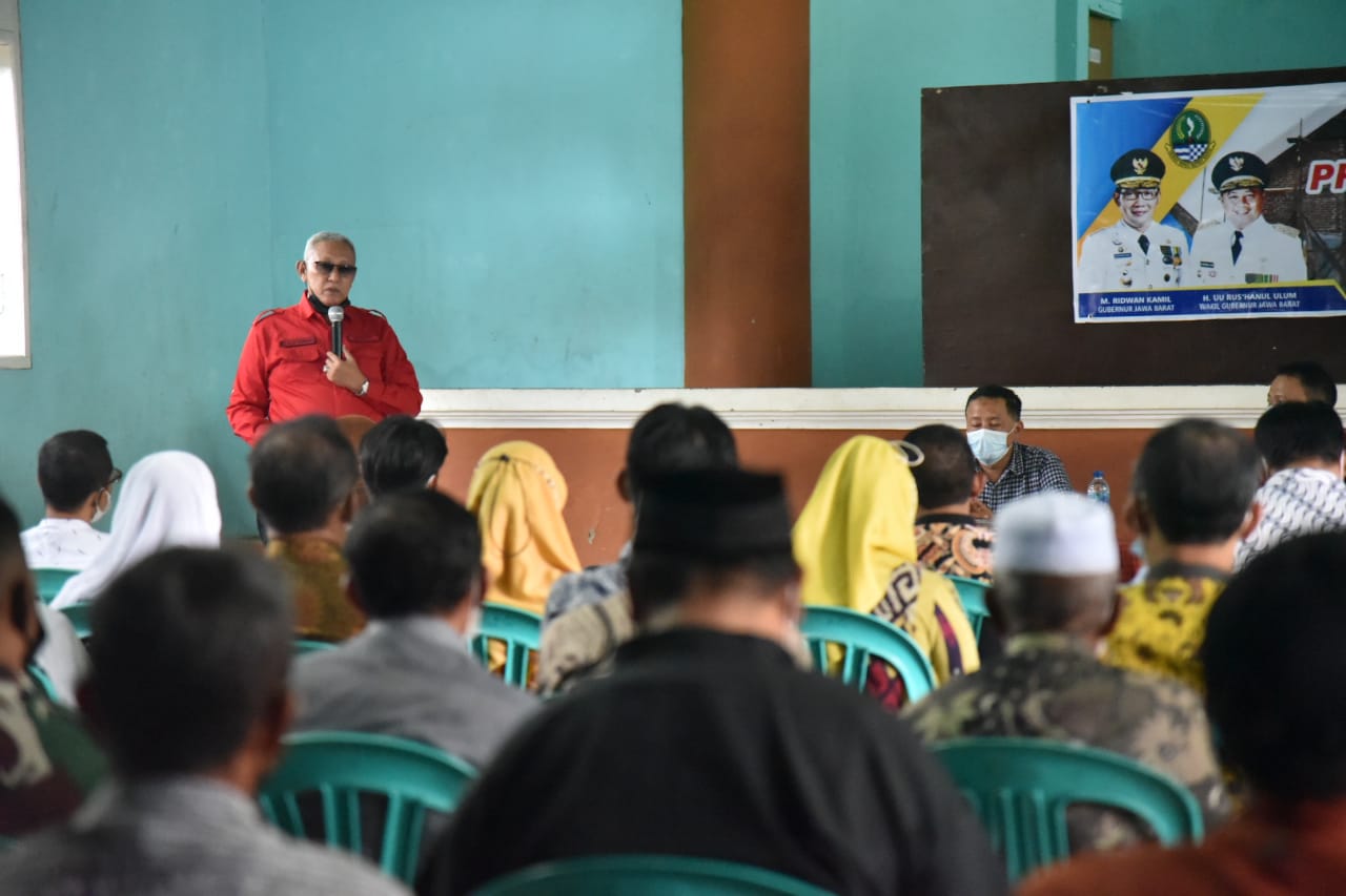 KUNINGAN,- Bupati Kuningan H. Acep Purnama, SH.,MH memberikan arahan pada acara Sosialisasi Kabupaten Program Perbaikan Rutilahu Provinsi Jawa Barat bertempat di Aula Kelurahan Cijoho Jl. Re. Martadinata No. 42 Kelurahan Cijoho Kec. Kuningan Kab. Kuningan, Kamis (24/03/2022).