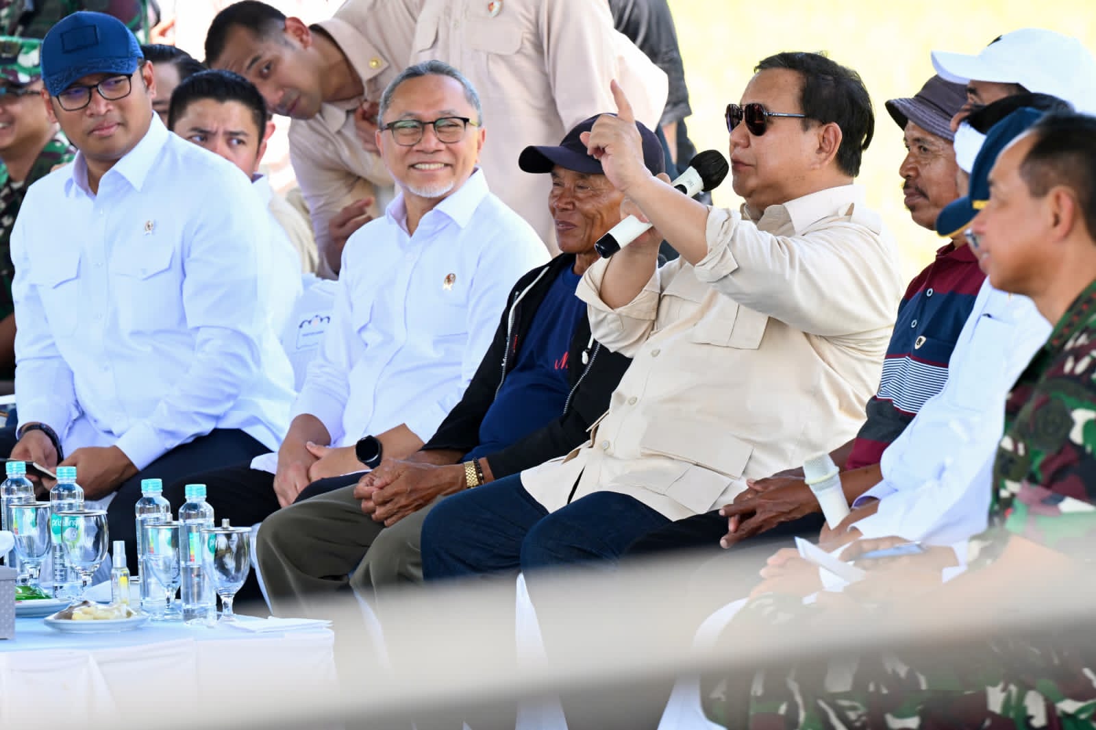 Presiden Prabowo juga menyapa para kepala daerah dan petani dari 14 provinsi melalui konferensi video, termasuk menyapa langsung Wakil Bupati Kuningan dan para petani di Desa Mekarjaya.