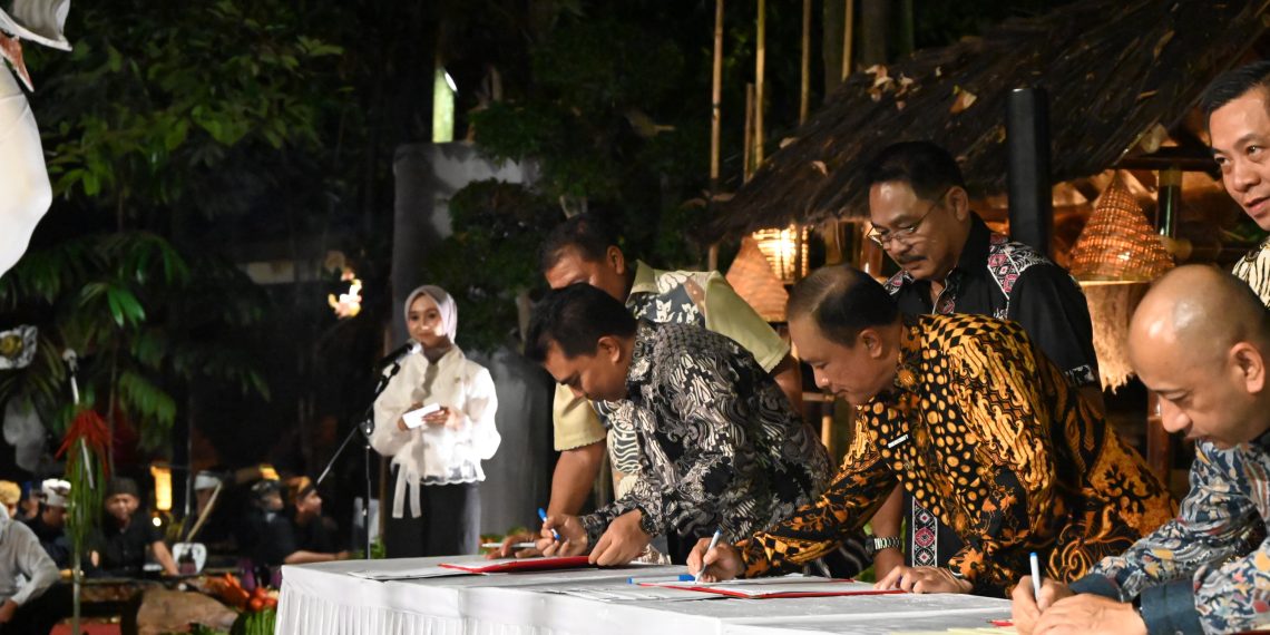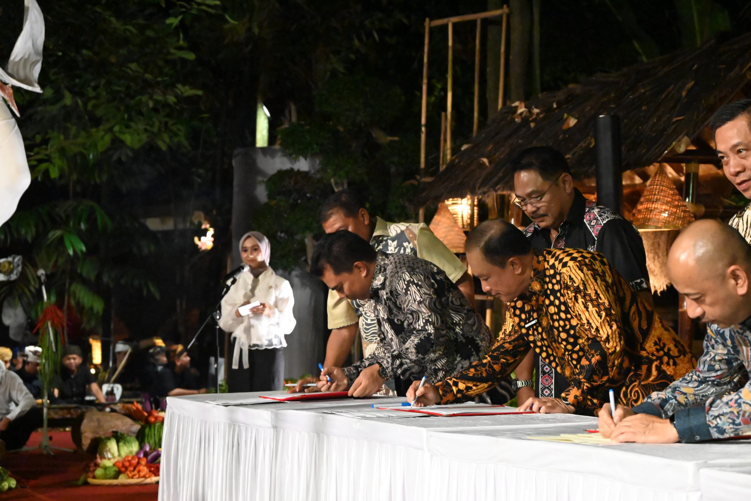 Acara peluncuran aplikasi Real Time Monitoring Village Management Funding Desa/Jaga diawali dengan penandatanganan naskah kerja sama dan komitmen bersama para kepala daerah serta kepala kejaksaan negeri se-Jawa Barat.