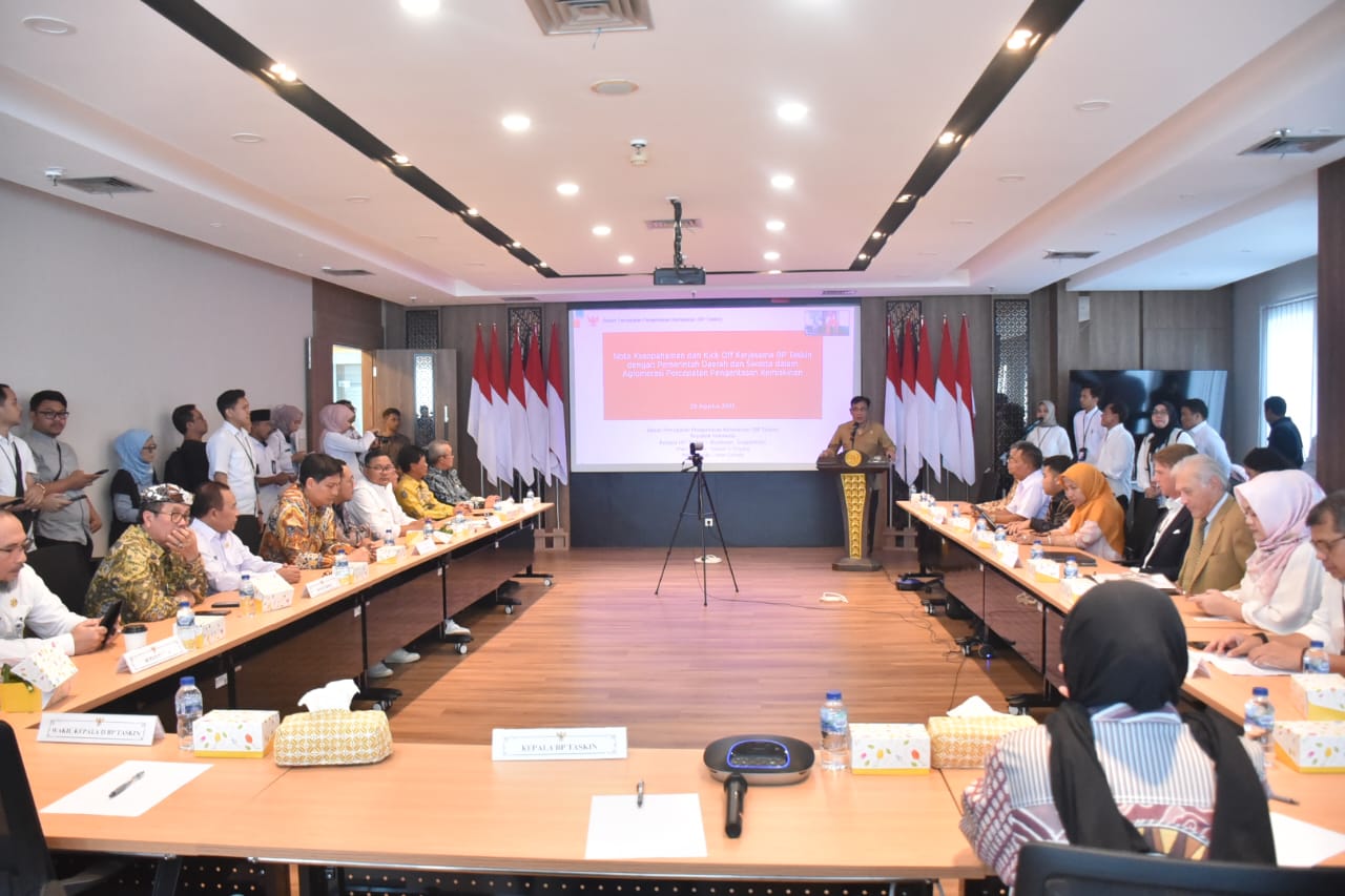 JAKARTA, Bupati Dian Rachmat Yanuar menghadiri Penandatanganan Nota Kesepahaman (MOU) Proyek Implementasi Penerapan Skema Semi Closed-Loop Suplly Chain (SCLSC) dalam Industrialisasi Pertanian dan Metrial Baru untuk Pengentasan Kemiskinan, bertempat di Kantor BP Taskin, Gedung Grand Kebon Sirih, Menteng, Jakarta Pusat. (20/08/2025)