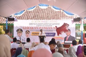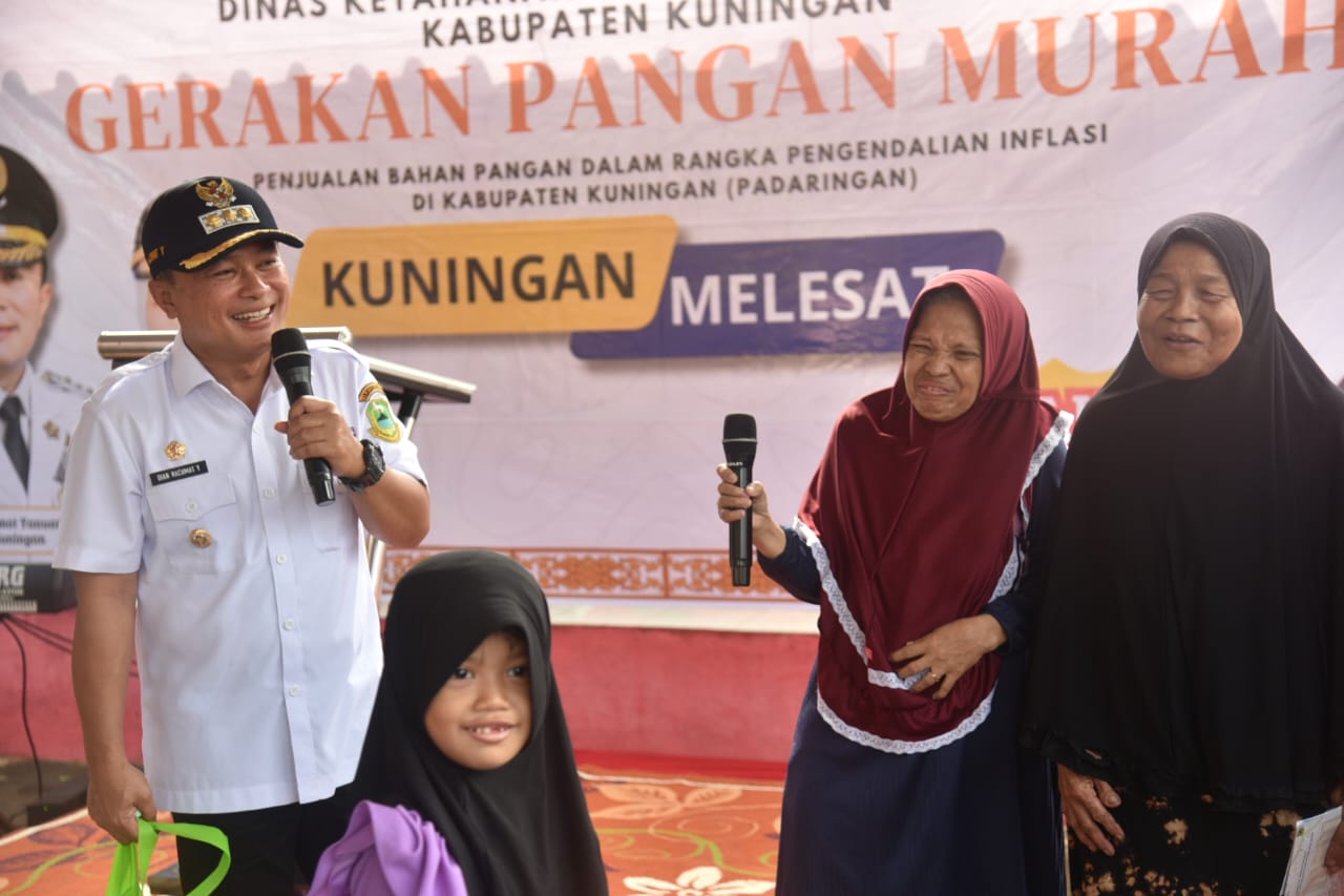 Bupati Kuningan Dr. H. Dian Rachmat Yanuar, M.Si hadiri dan membuka secara langsung Gerakan Pangan Murah (GPM) Padaringan ini, yang dimana merupakan salah satu Program 100 hari kerja Bupati dan Wakil Bupati.