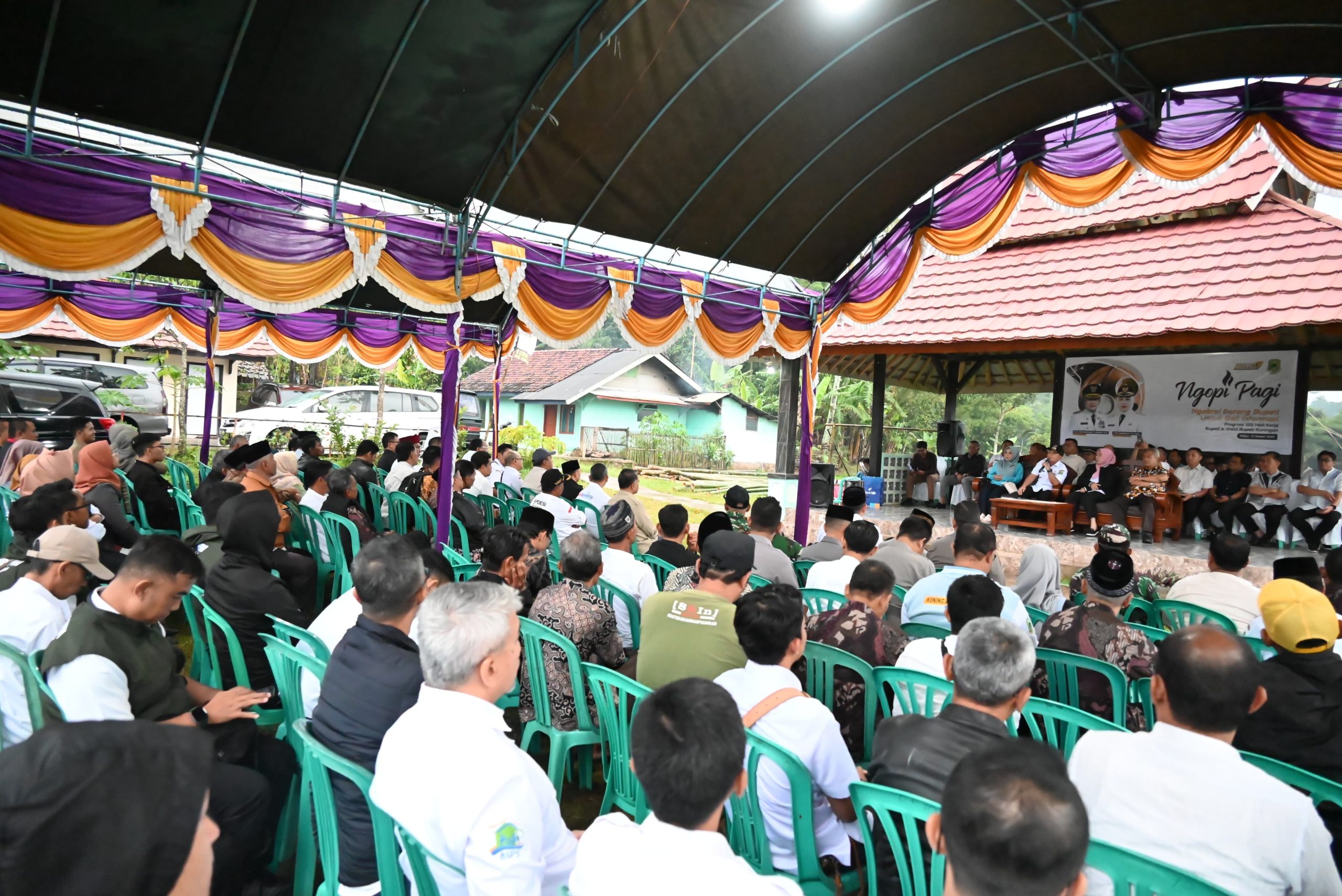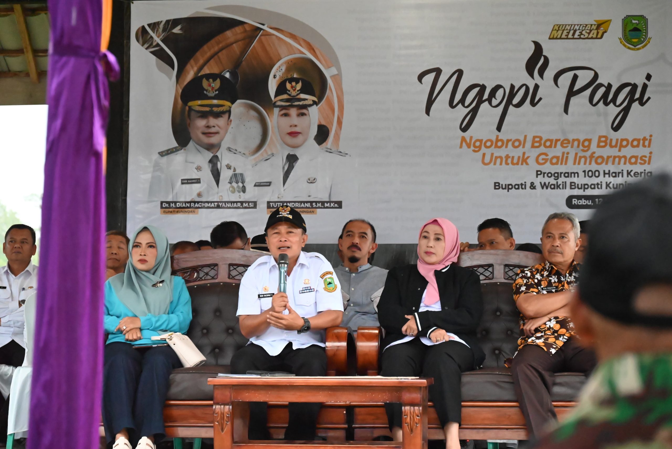 Dalam sambutannya, Bupati Kuningan, Dr. H. Dian Rachmat Yanuar, Msi menyebutkan bahwa Program Ngopi Pagi ini adalah media untuk mempertemukan pimpinan daerah bersama masyarakat desa untuk menjaring aspirasi, aduan dan menerima keluhan-keluhan yang terjadi di masyarakat desa