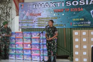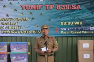 Kuningan – Bupati Kuningan, Dian Rachmat Yanuar, menghadiri acara bakti sosial yang diselenggarakan oleh Batalyon Infanteri TP 839/Satria Abyakta (Yonif TP 839/SA) bertempat di Marshalling Area Yonif TP 839/SA – Pasar Rakyat Cilimus Kec.Cilimus Kab. Kuningan, Selasa (16/09/2025).