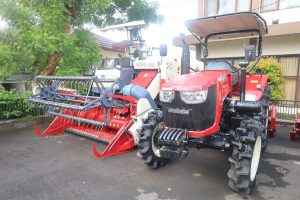 Combine Harvester diberikan kepada Kepala Brigade Alsintan Diskatan, Nia Kurniasari. Dan Traktor Roda 4 diterima oleh UPJA Tani Merdeka Indonesia (TMI).(IKP/DISKOMINFO/PROKOMPIM)