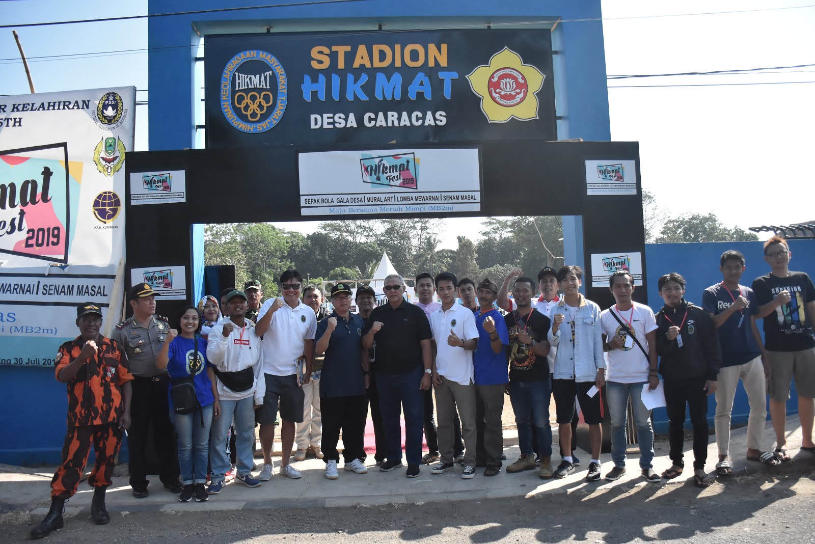 Bupati Kuningan H. Acep Purnama, menghadiri Opening Ceremony Hikmat Fest 2019 di Stadion Hikmat Desa Caracas, Kecamatan Cilimus, Sabtu (3/8/2019). Dalam sambutannya, Bupati Acep mengatakan bangga karena banyak potensi di desa itu yang berkembang salah satu diantaranya dengan kehadiran stadion tersebut.