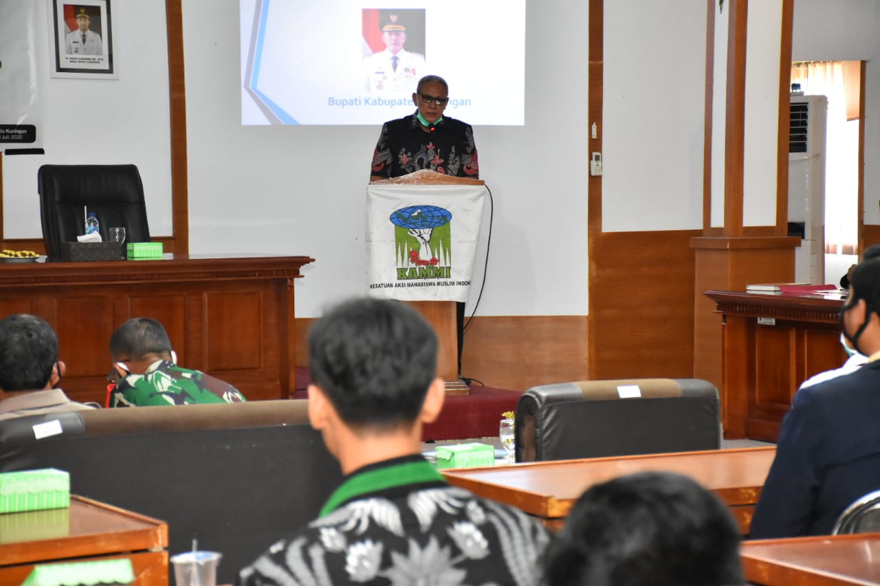 Bupati Kuningan dalam sambutanya menyampaikan penghargaan terkait dengan kegiatan KAMMI di Kab.Kuningan selalu konsisten berkesinambungan dalam rangka pengkaderan keanggotaanya searah dengan latar belakang organisasi KAMMI yang memiliki citra kebangsaan, kemanusiaan, keagaamaan serta kemahasiswaan kepemudaan.
