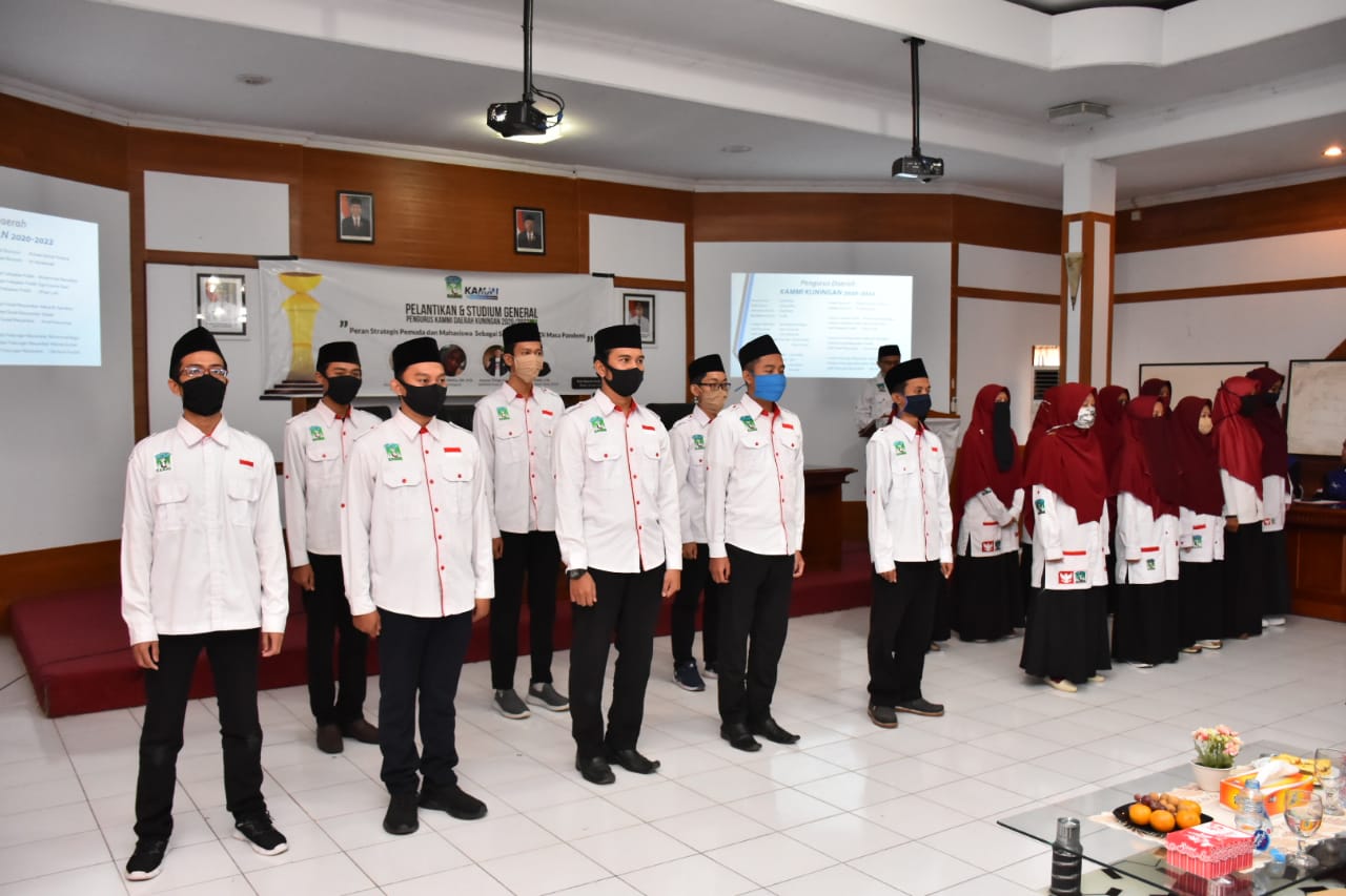 KUNINGAN,Ketua Umum KAMMI Daerah Kuningan Iis Mukhlis dan Pengurus Daerah KAMMI Kuningan Periode 2020-2022 Resmi di lantik di Aula Bappeda Kuningan dengan melakukan Protokol Kesehatan yang sudah di anjurkan, Minggu (12/07/2020).