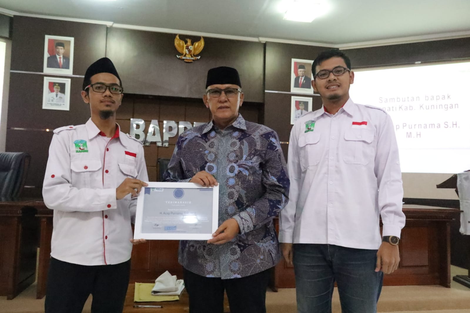 Dalam kegiatan tersebut di secara simbolis memberikan Penyerahan bingkai sertifikat sebagai Ucapan Terima Kasih oleh Ketua Umum PD KAMMI Kuningan (Muhammad Bagja) di dampingi Ketua Umum PP KAMMI Zaky Ahmad Rivai, S.H.I., M.H. kepada Bupati Kuningan H. Acep Purnama S.H, M.H (Bid IKP/Diskominfo).