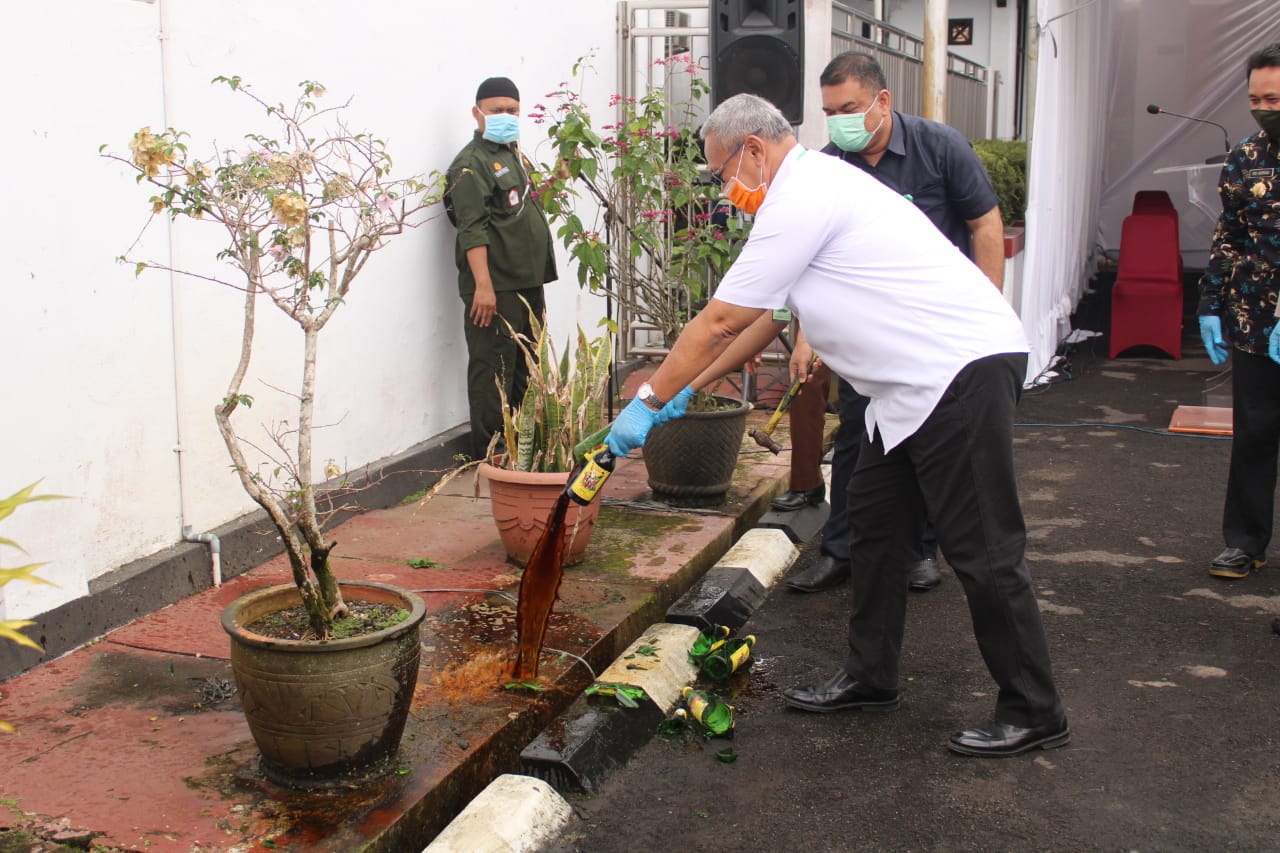 Bupati Kuningan, H. Acep Purnama, SH., MH., mengemukakan, pemusnahan barang bukti kejahatan, hasil sitaan, merupakan salah satu bukti pemerintah daerah, juga dengan dukungan organisasi kemasyarakatan konsisten dalam memerangi segala bentuk kemaksiatan. “Ini merupakan bukti bahwa pemerintah konsisten untuk terus berupaya memerangi segala bentuk kemaksiatan yang berpotensi merusak akhlak dan menimbulkan dekadensi moral, khususnya di kalangan generasi muda,” ungkap Acep.