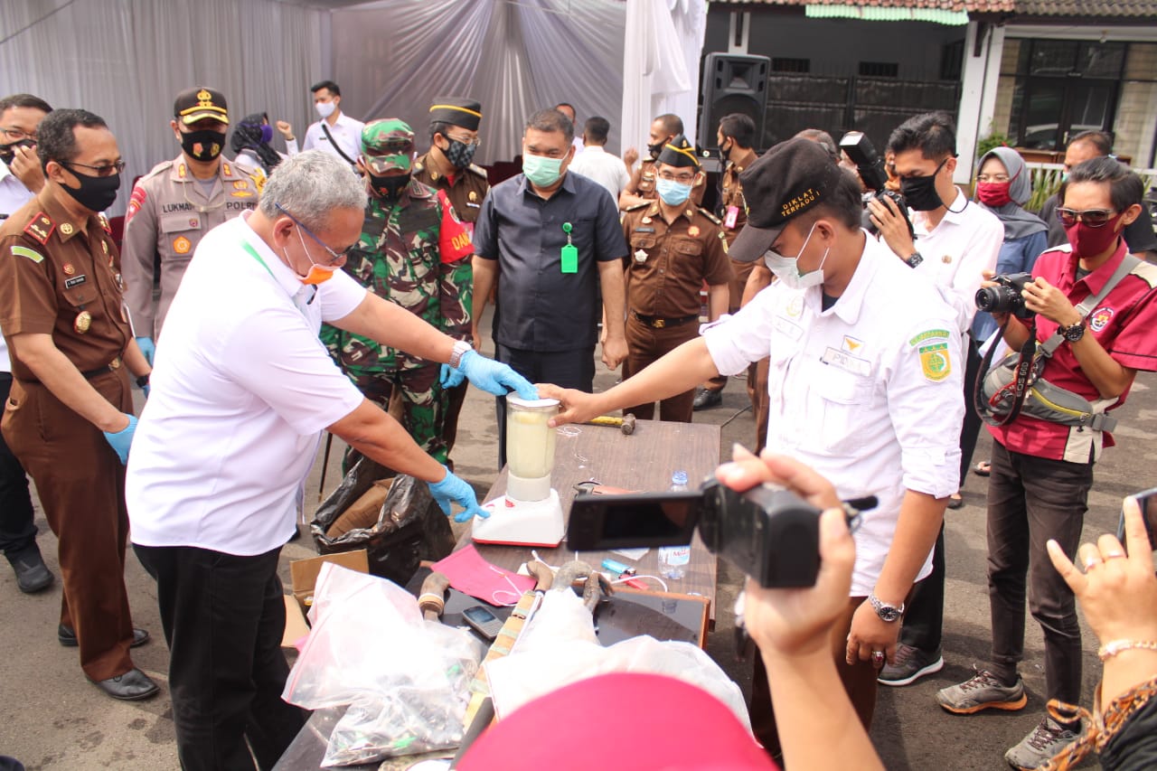 Kepala Kejaksaan Negeri Kuningan L. Tedjo Sunarno, SH, MH menuturkan pemusnahan barang bukti yang hari ini akan di musnahkan yakni hasil dari 36 Perkara. Barang-barang yang akan di musnahkan antara lain barang bukti perkara kosmetik dengan jumlah 451 Pcs, barang bukti perkara Sabu-sabu 85 paket dengan berat kotor 204,87 gram, Ganja 53,27 gram, Ekstasi/inex 0,87 gram, Heximer 1100 butir, Trihex 2260 Butir, Tramadol 295 butir, Alprazolam 50 butir, Riklona 50 butir, Dextro 40 butir, 5 buah sajam, 26 botol miras, 7 bungkus tuak ukuran 1 liter, dan 1 jerigen tuak 20 liter.