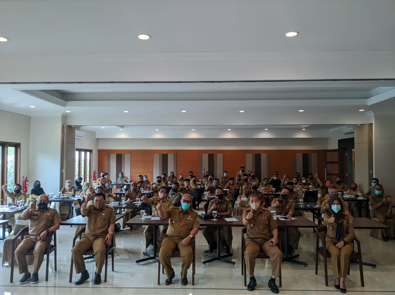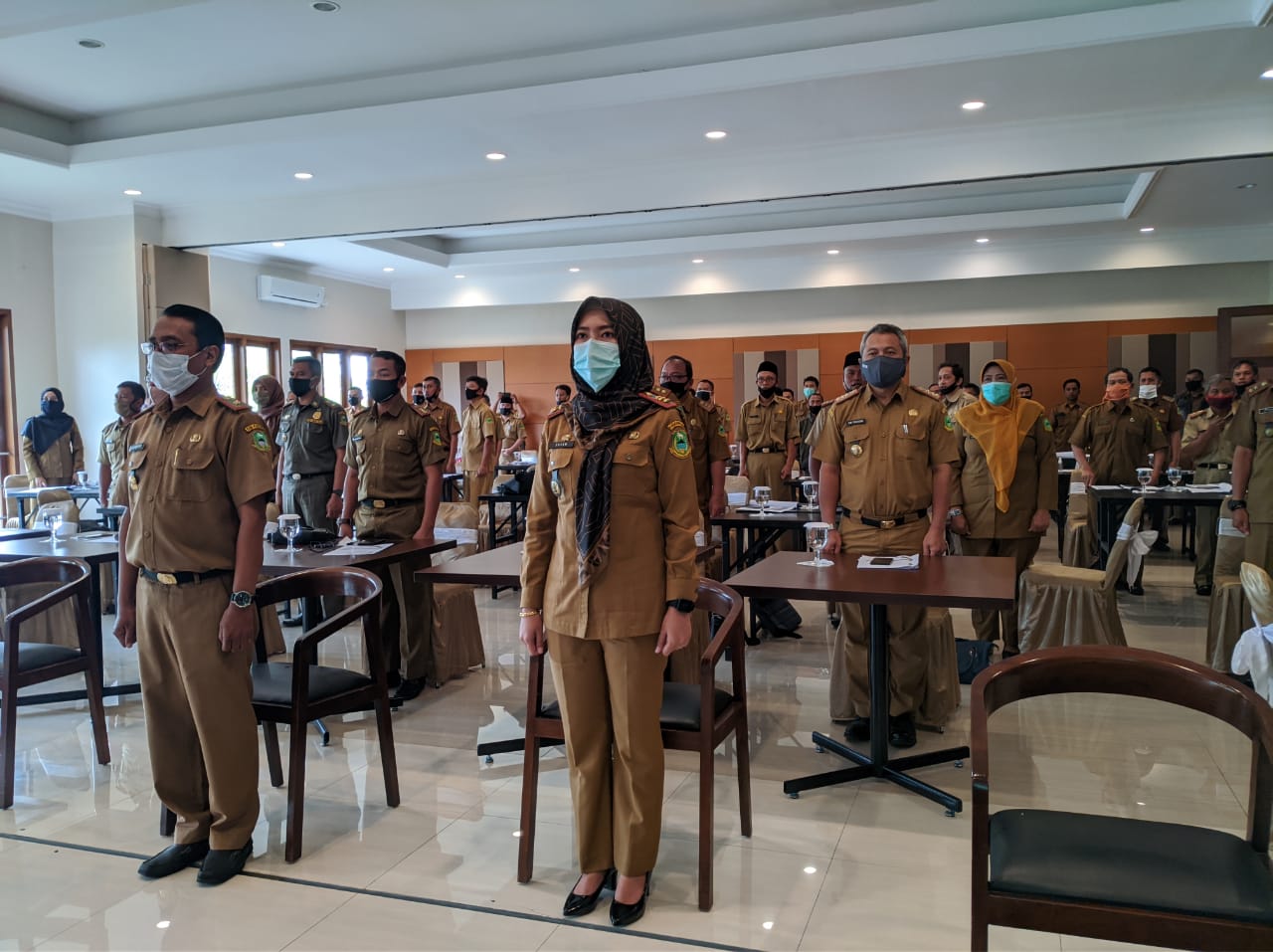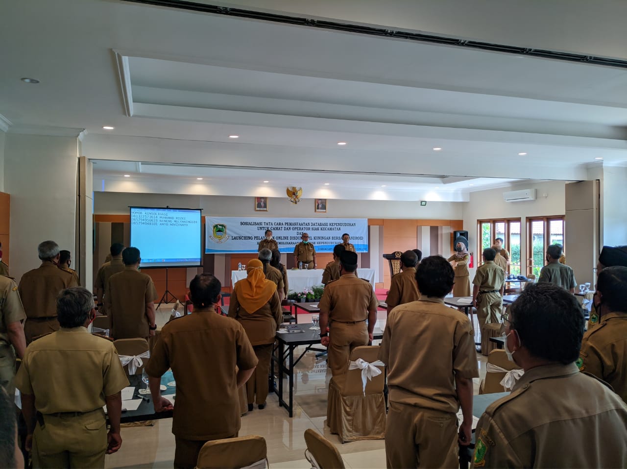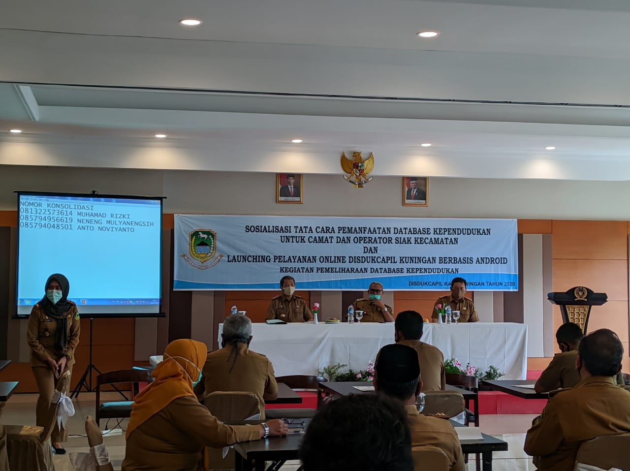 KUNINGAN, Bupati Kuningan H.Acep Purnama, SH, MH bersama dengan PLT.Kepala Dinas Kependudukan dan Pencatatan Sipil Kabupaten Kuningan Drs. Ucu Suryana, M.Si, membuka Kegiatan Sosialisasi Tata Cara Pemanfaatan Database Kependudukan Untuk Camat dan Operator SIAK Kecamatan se Kabupaten Kuningan dan Launching Pelayanan Online Disdukcapil Kabupaten Kuningan Berbasis Android di Wisma Pepabri Linggarjati Kuningan, Selasa (21/07/2020). Kegiatan tersebut di ikuti oleh Para Camat Se-Kabupaten Kuningan dan para Operator Sistem Informasi Administrasi Kependudukan (SIAK) Kecamatan se-Kabupaten Kuningan.