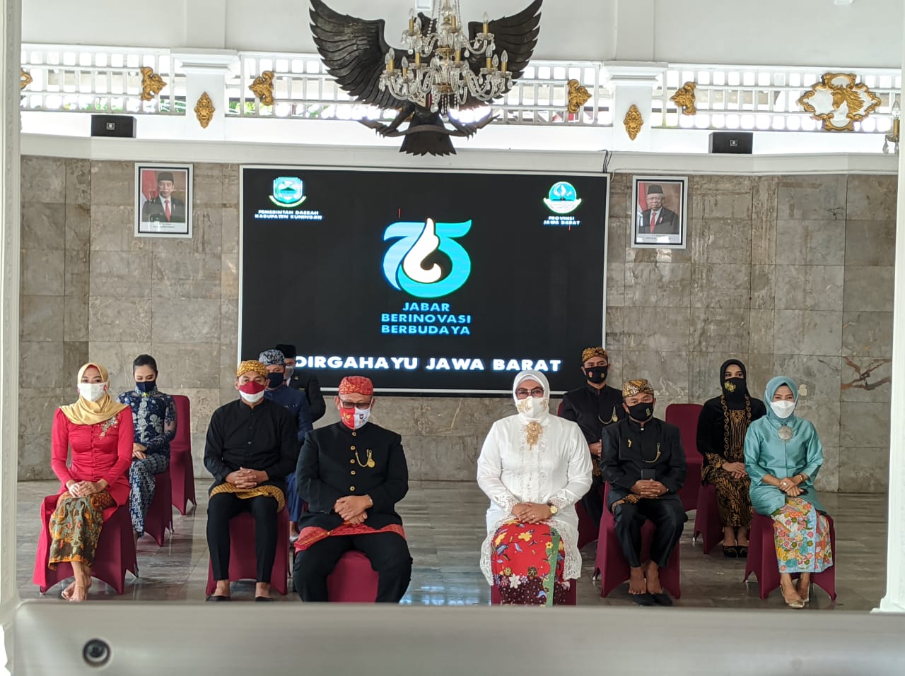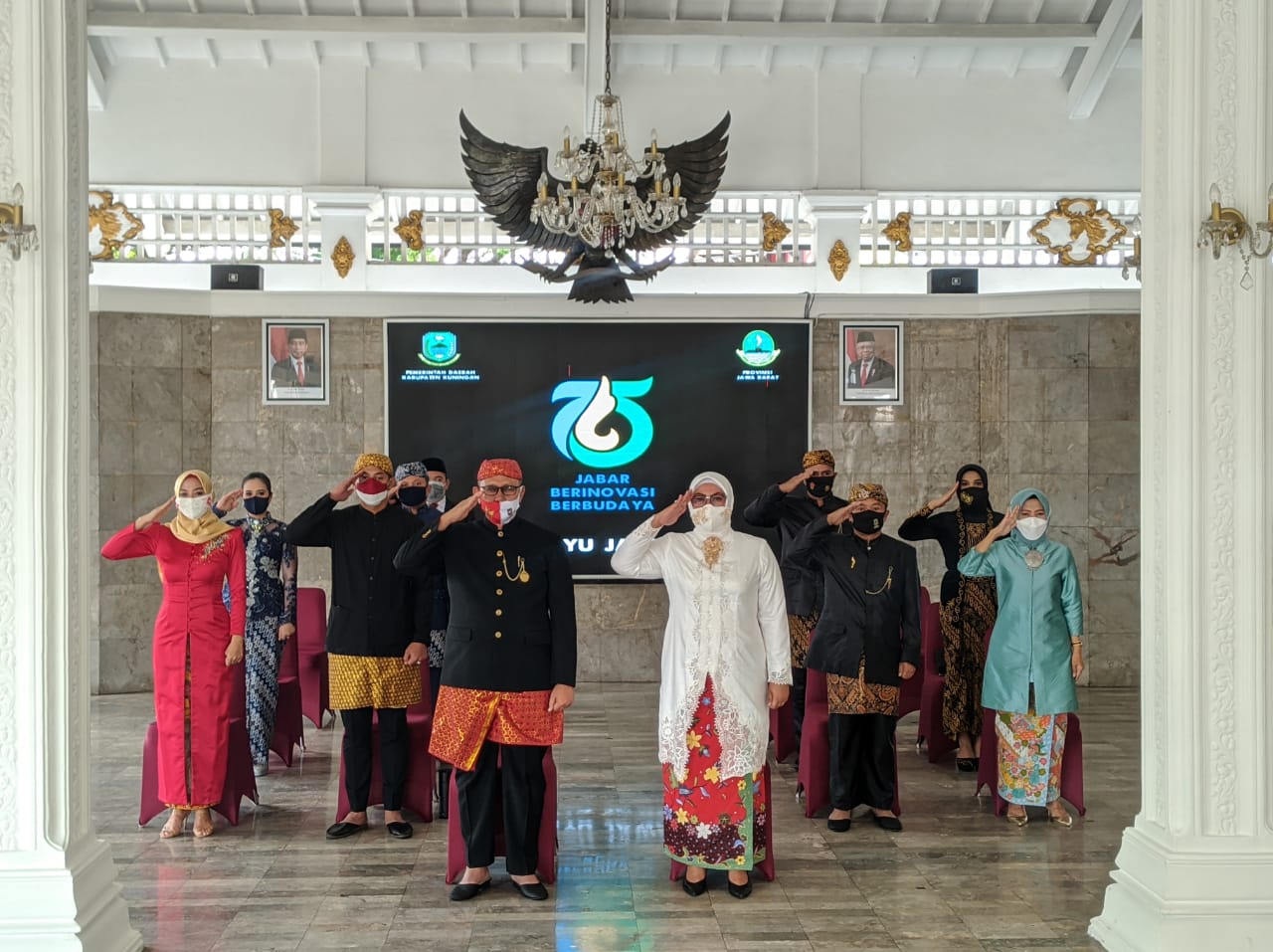 Bupati Kuningan H. Acep Purnama, SH., MH. mengikuti Upacara Peringatan HUT ke-75 Provinsi Jawa Barat di Pendopo, Rabu (19/08/2020). Kegiatan ini dihadiri oleh Forum Koordinasi Pimpinan Daerah Kabupaten Kuningan beserta istri.