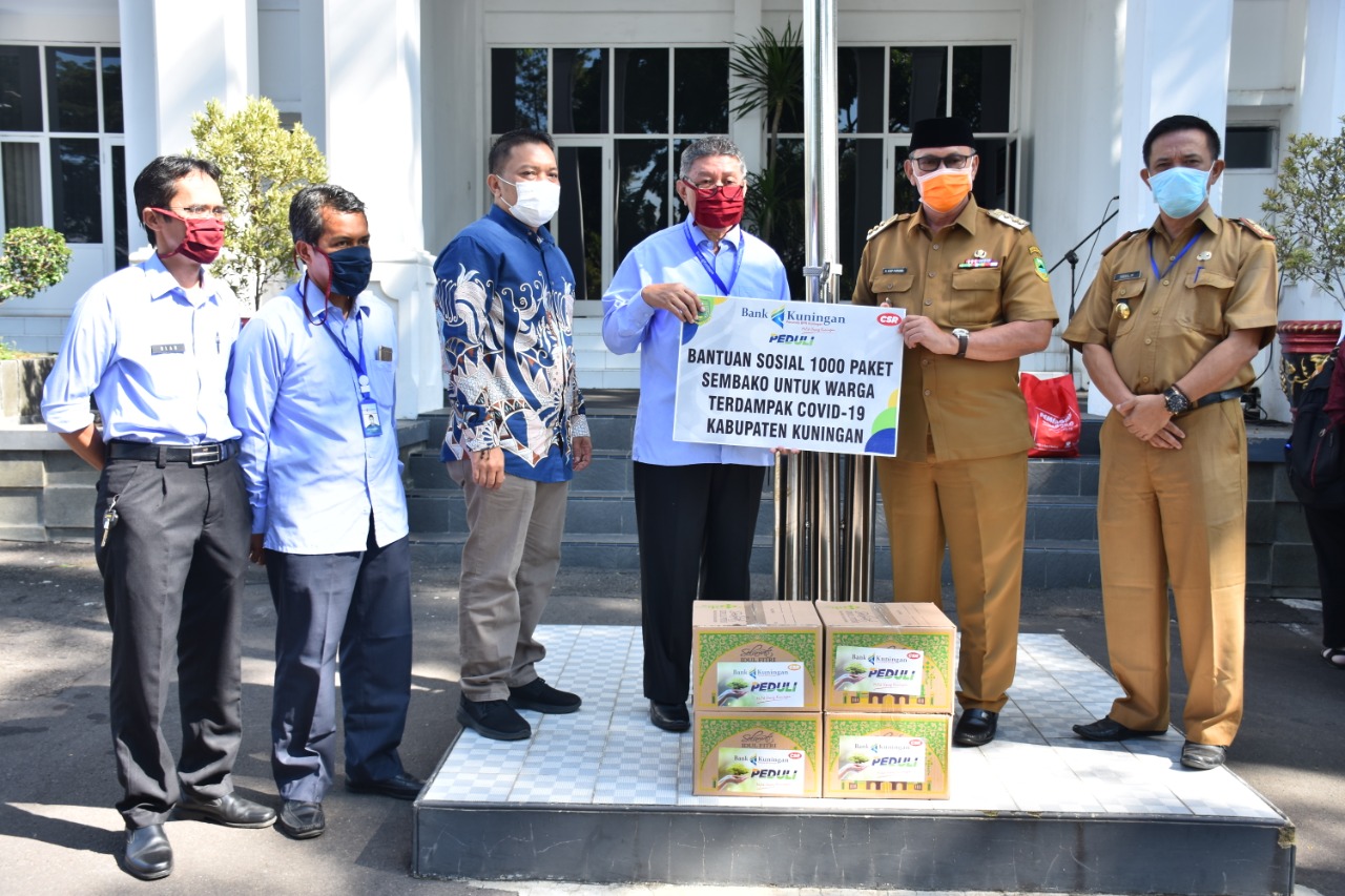 Dalam waktu yang sama, Bank Kuningan juga memberikan bantuan 1000 paket sembako dan diterima langsung Bupati Kuningan. Selanjutnya, PT Telkom juga memberikan bantuan kepada Pemkab Kuningan berupa 200 paket sembako bagi masyarakat terdampak covid-19. Dimana bantuan tersebut akan disalurkan oleh Pemkab Kuningan sebanyak 50 paket dan 150 paket oleh pihak PT Telkom sendiri.