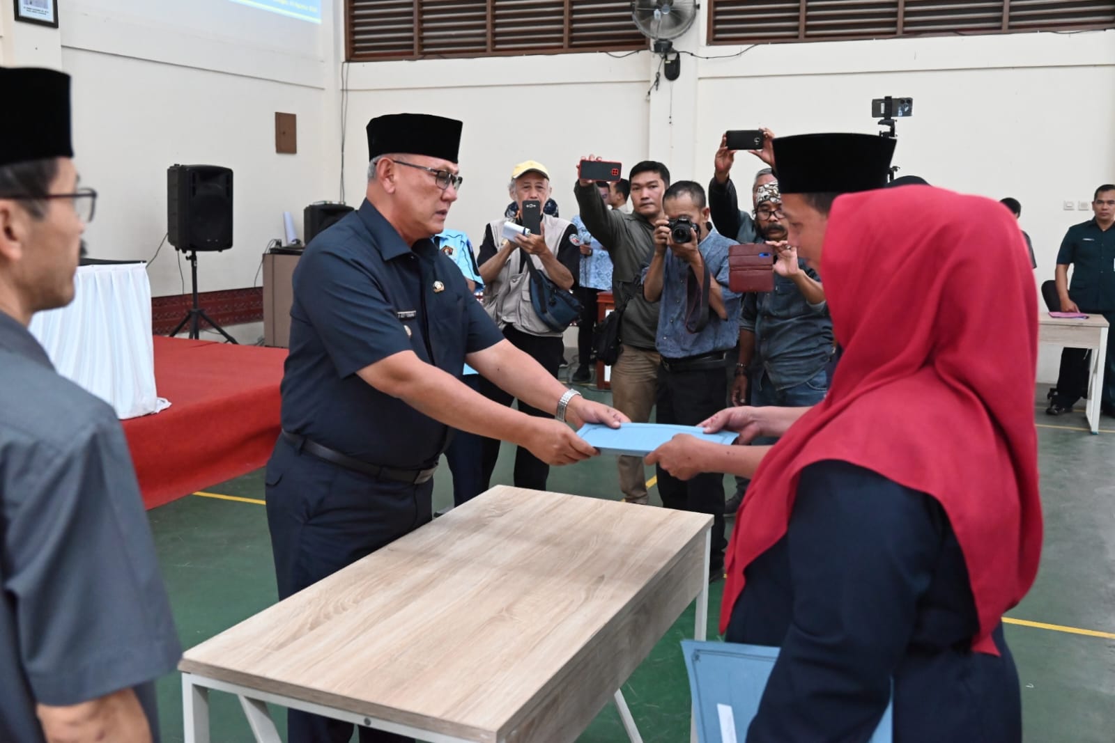 Kuningan, 10 Agustus 2023 – Sebanyak 247 pungsional guru terdiri dari ysng promosi 99 orang dan yang alih tugas (mutasi) sebanyak 148 orang kepala sekolah di Kabupaten Kuningan, dari tingkat taman kanak-kanak hingga SMP, berkumpul di Aula BKPSDM dalam agenda penting. Bupati Kuningan, H Acep Purnama, memberikan amanat yang inspiratif kepada para Kepala Sekolah yang baru diberi SK penugasan dan alih tugas sebagai Kepala Sekolah.
