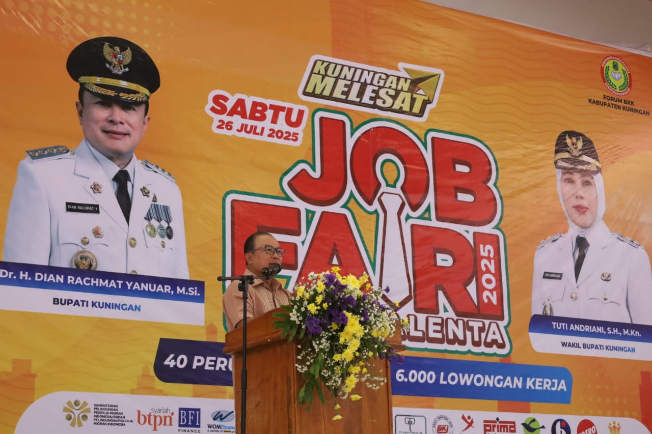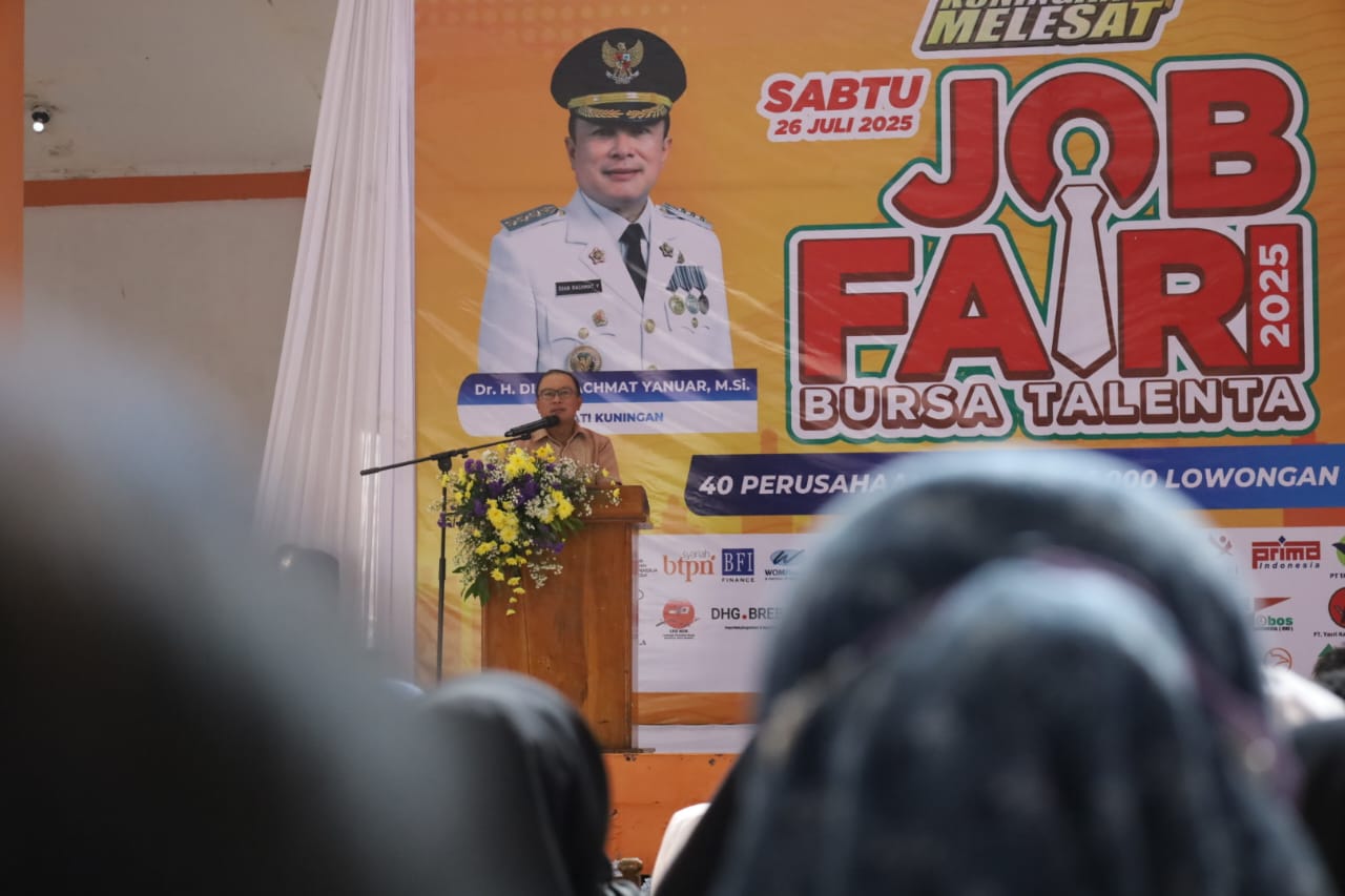 KUNINGAN – Pemerintah Kabupaten Kuningan melalui Dinas Tenaga Kerja dan Transmigrasi (Disnakertrans) kembali menggelar Job Fair atau Bursa Talenta Tahun 2025 Tahap 2. Kegiatan ini secara resmi dibuka oleh Bupati Kuningan, Dr. H. Dian Rachmat Yanuar, M.Si., pada Sabtu pagi (26/7/2025), bertempat di GOR Ewangga Kuningan.