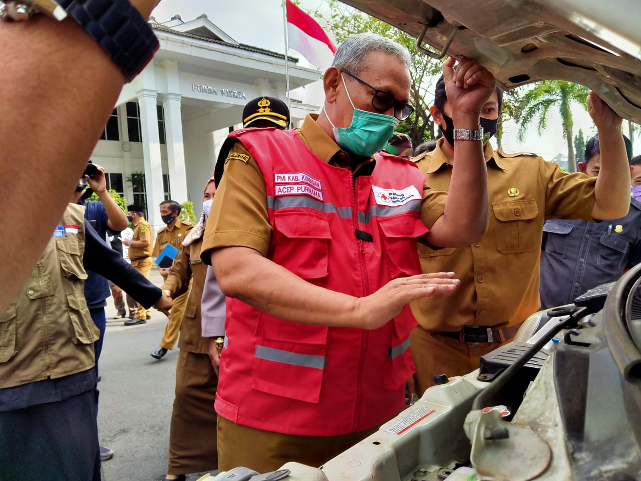 Seusai Apel Siaga Covid 19 bupati melakukan Rechecking kendaraan roda empat Puskesmas dari segi kebersihan dan kesehatan mobil tersebut dan beberapa di antaranya bupati memberikan masukan kepada mereka yang memegang kendaraan tersebut agar lebih merawat lagi kebersihan mesin supaya kendaraan-kendaraan tersebut lebih prima ketika akan di gunakan. Dimana mobil-mobil tersebut tadinya adalah mobil puskesmas keliling di masing-masing kecamatan. Kendaraan dengan branding MOBILE COVID-19 Test, bakal mendatangi setiap titik rapid test massal di 32 kecamatan se-Kab.Kuningan.