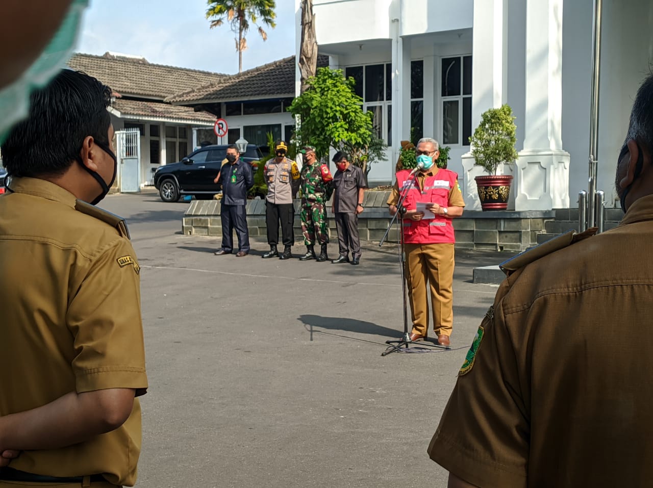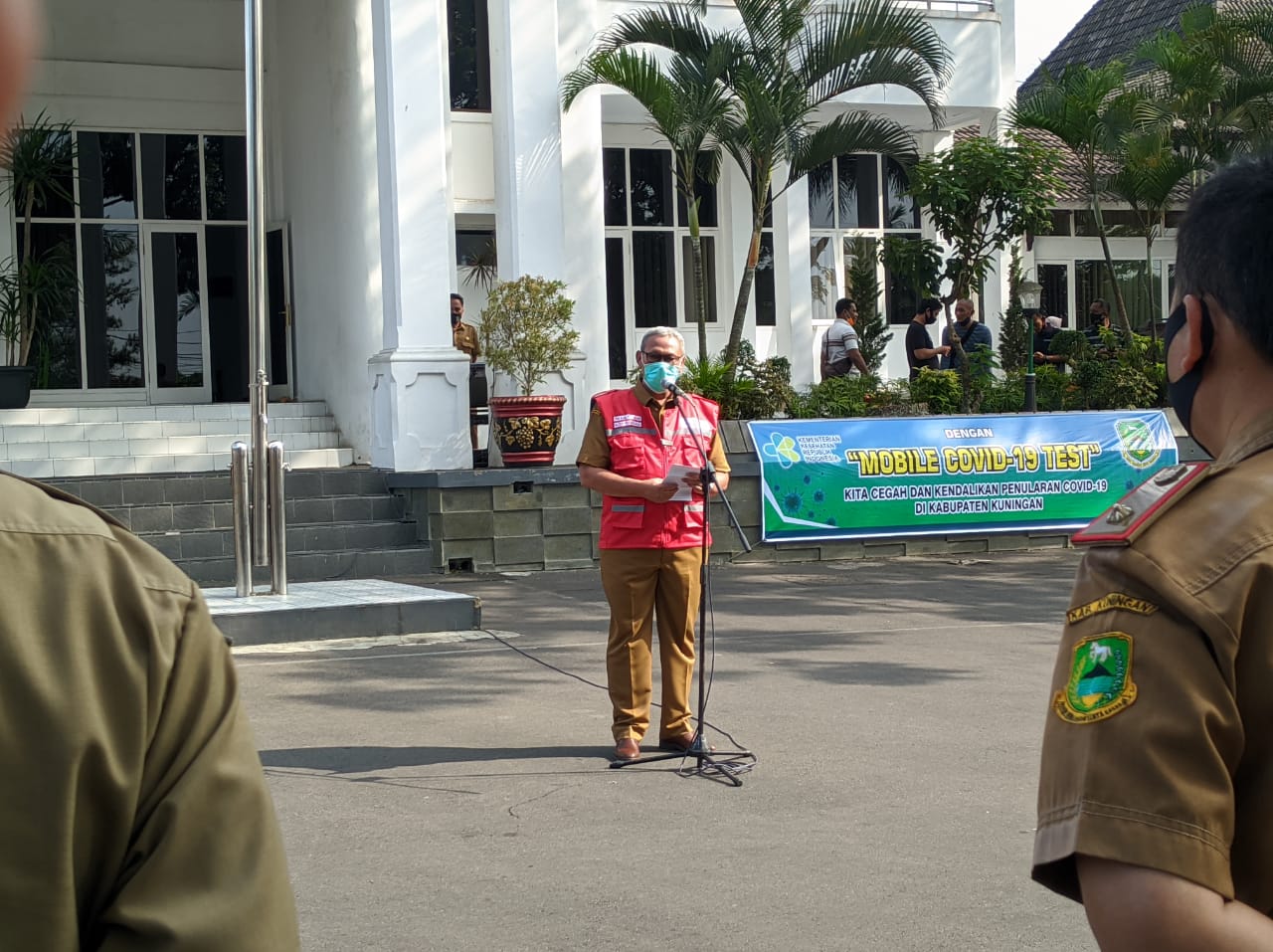 KUNINGAN, (21/07/2020) Bupati Kuningan bersama jajaran Forum Koordinasi Pimpinan Daerah (Forkopimda) dan Kepala Dinas Kesehatan Kab.Kuningan beserta para peserta apel perwakilan Puskesmas dari 32 Kecamatan se-Kab.Kuningan melaksanakan Apel Siaga Covid 19 dan Meresmikan Penggunaan Pusling Sebagai Mobile Covid 19 Test di halaman Setda Kabupaten Kuningan.