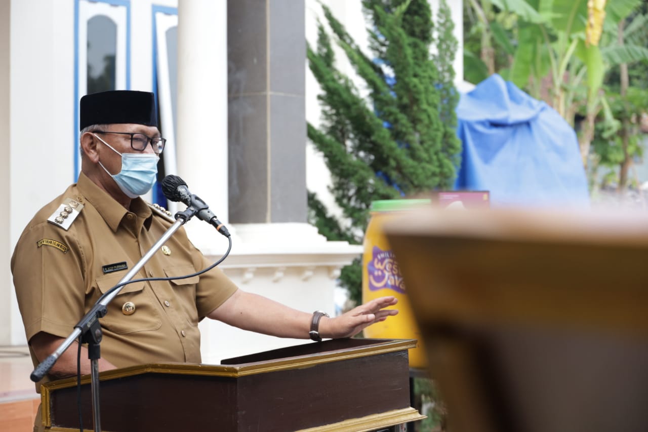 Kuningan,- Bupati Kuningan, H. Acep Purnama, SH., MH. lakukan Peletakan Batu Pertama Pembangunan Masjid Darussalam Desa Cibuntu, Kecamatan Pasawahan, Kabupaten Kuningan. Selasa, (21/9/2021) di Masjid Darussalam.