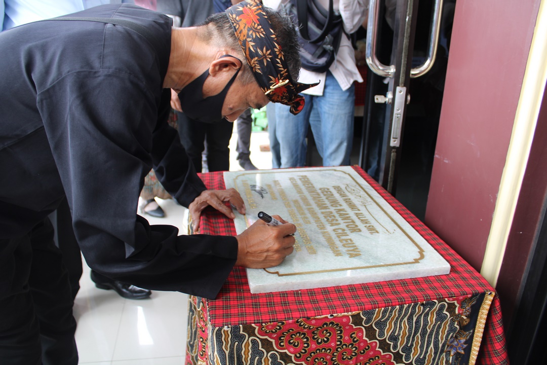 Kegiatan peresmian gedung kantor Pemerintahan Desa Cileuya, kecamatan Cileuya secara simbolis dilakukan dengan pengguntingan pita oleh bupati Kuningan, H. Acep Purnama SH., MH., sabtu (08/08/20).
