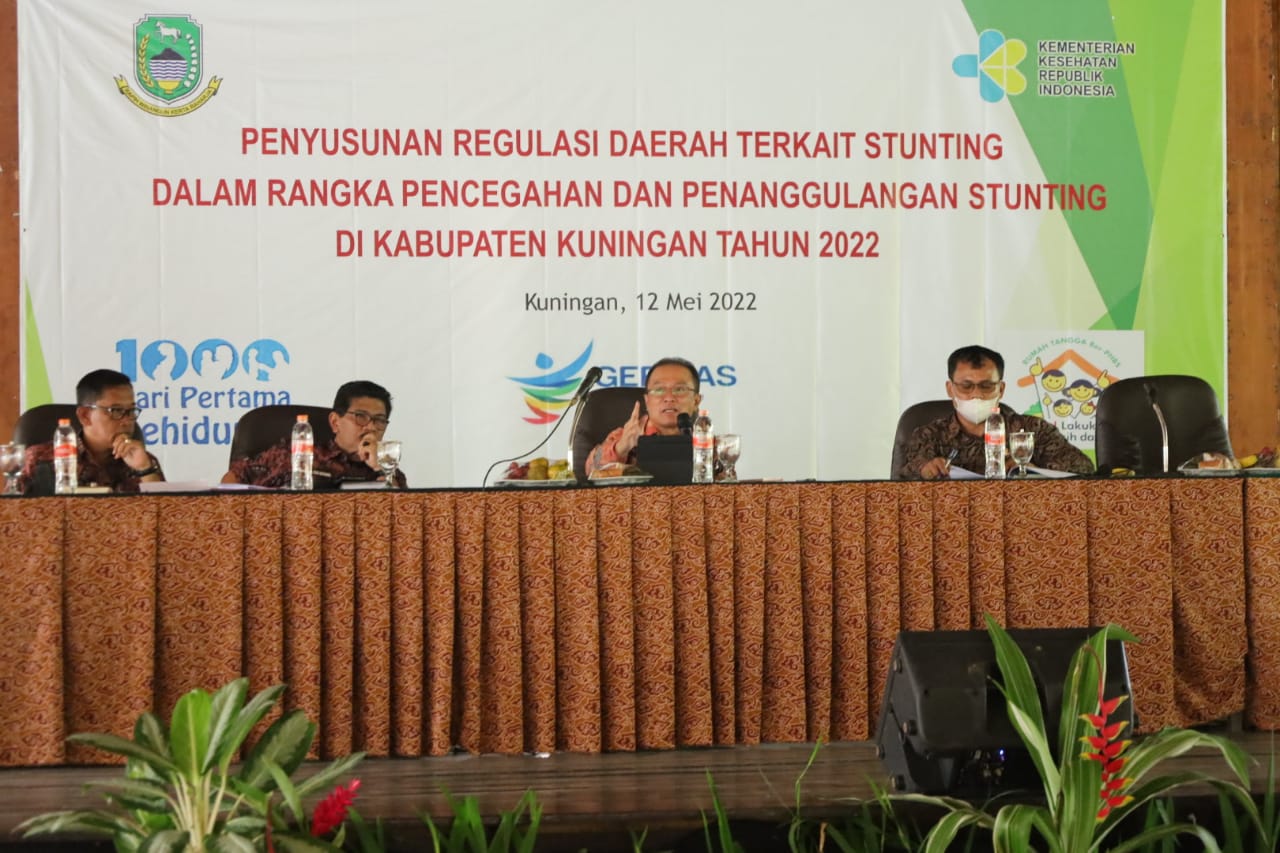 KUNINGAN,- Untuk pencegahan dan penanggulangan stunting, Pemerintah Kabupaten Kuningan mengadakan pertemuan dengan SKPD, Civitas Akademika, dan Para Stakeholder di Kabupaten untuk penyusunan regulasi daerah terkait stunting, disalah satu Hotel Kuningan, Kamis (12/5/2022)