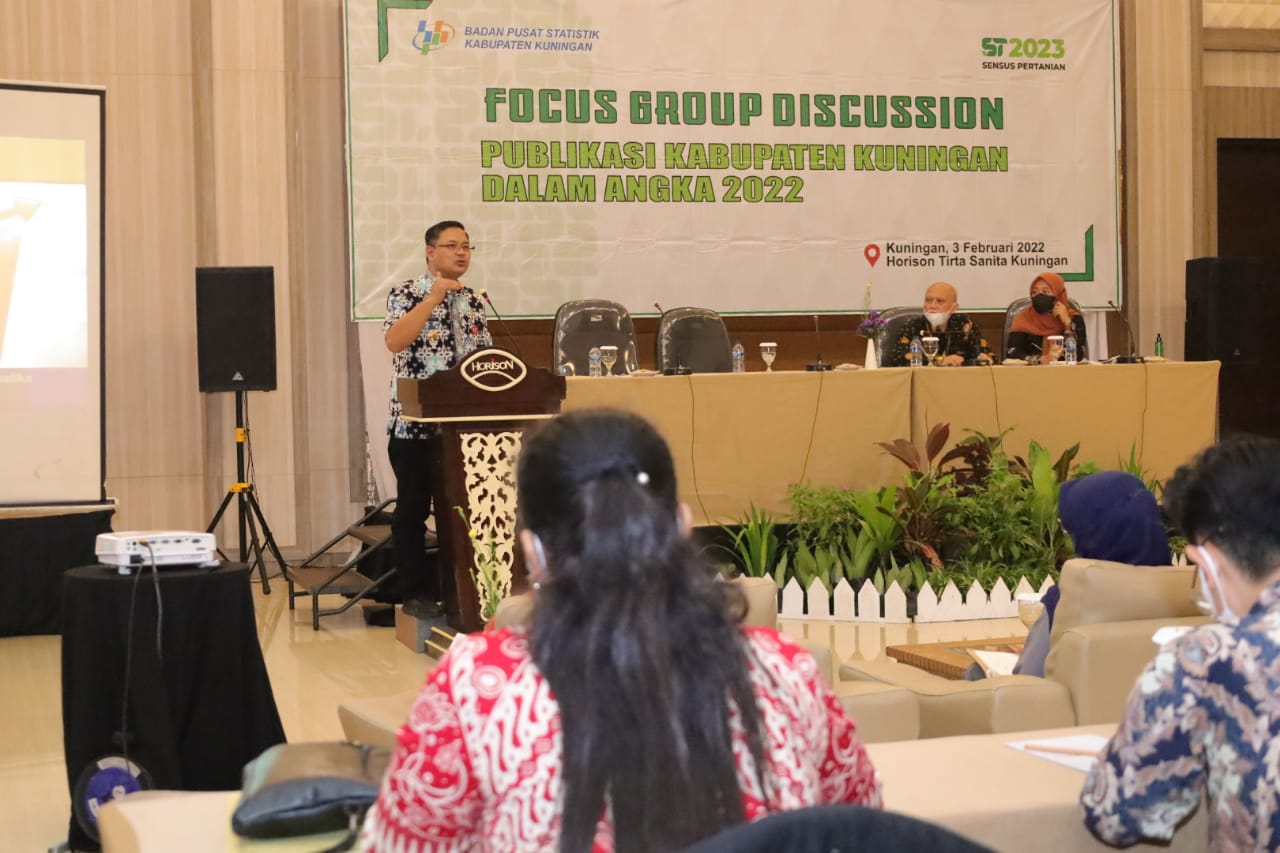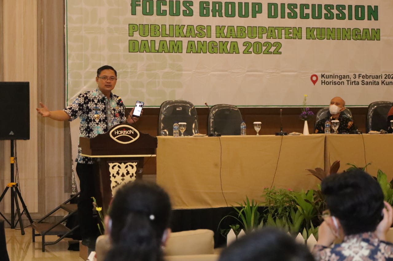 Hal ini disampaikan oleh Kepala Dinas Komunikasi dan Informatika Kabupaten Kuningan Dr. Wahyu Hidayah, M. Si. saat memberikan materi pada acara Focus Group Discussion (FGD) Publikasi Kabupaten Kuningan dalam Angka 2022, kamis (3/2/2022) bertempat disalah satu Hotel Kuningan dengan mengusung tema “Sinkronisasi Data Publikasi Kabupaten Kuningan Dalam Angka 2022 Dalam Mendukung Pembangunan Statistik Di Kabupaten Kuningan”.