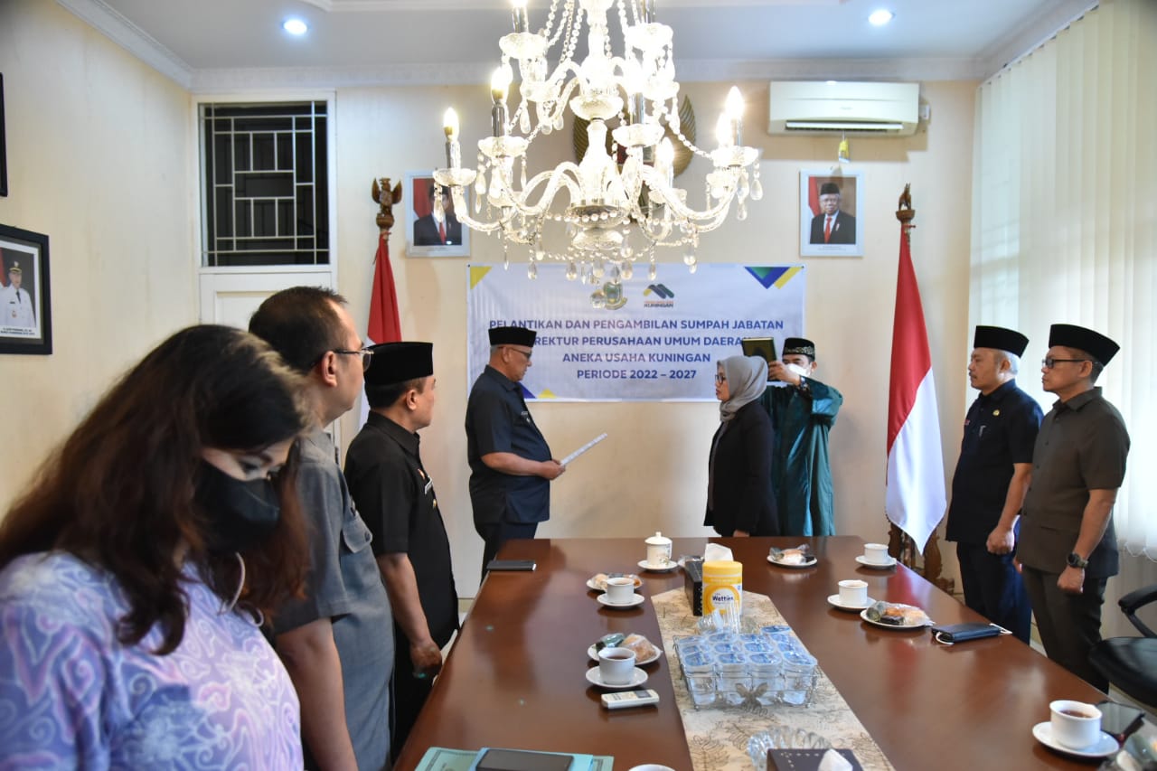 Pelantikan dan pengambilan sumpah ini disaksikan Sekda Kuningan yang Juga selaku Ketua Timsel (Tim seleksi) Calon Direktur Perumda AU, Dr. Dian Rachmat Yanuar, M.Si, Wakil Bupati Kuningan HM. Ridho Suganda, SH, M.Si, Staf Ahli Bupati Bidang Pembangunan, Ekonomi dan Keuangan, Kepala Bagian Perekonomian dan SDA, Perwakilan Perumda AU.