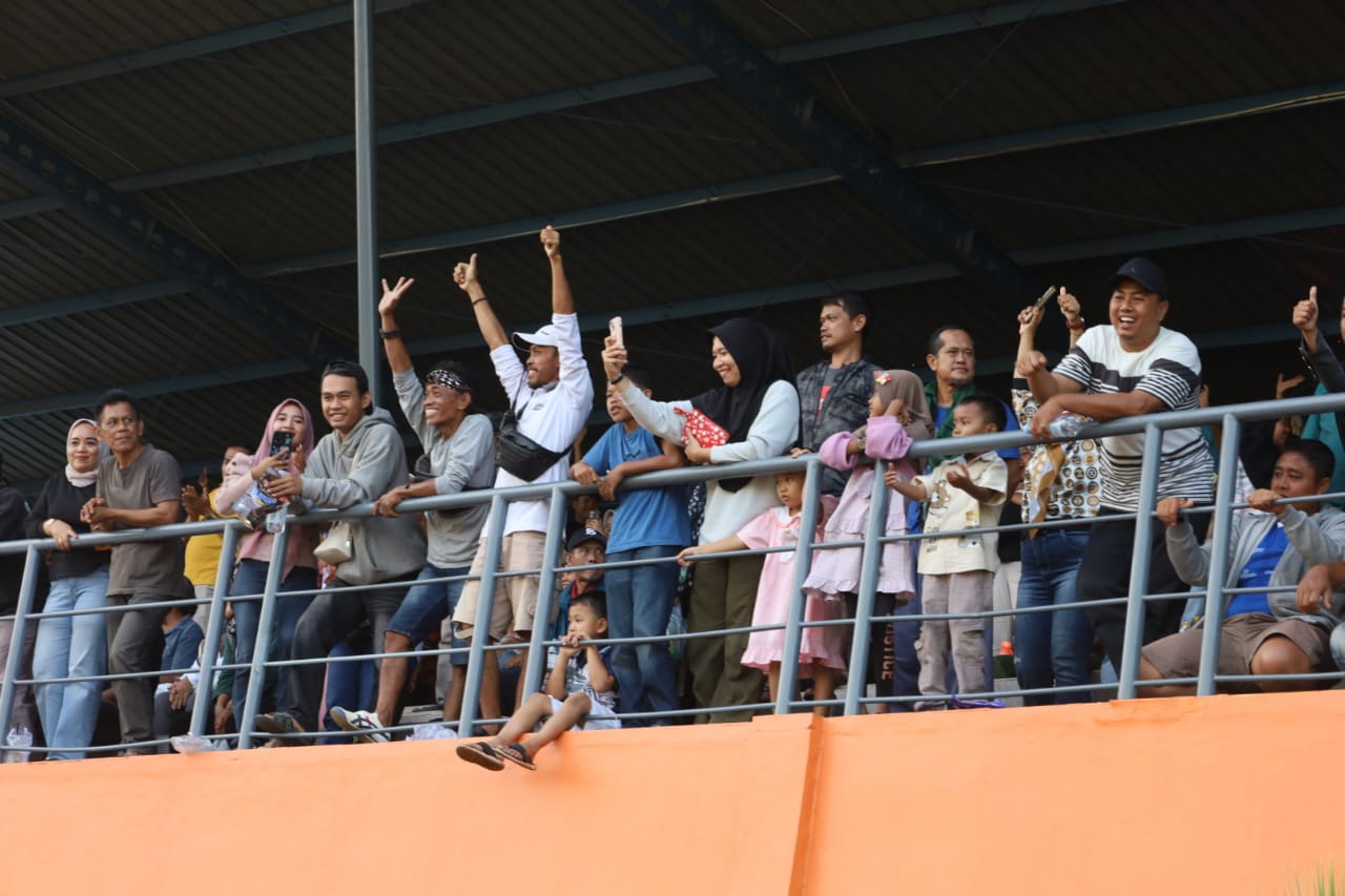 KUNINGAN – Ribuan suporter memadati Stadion Mashud Wisnusaputra saat laga final Turnamen Sepak Bola antar Kecamatan Bupati Cup 2025, Minggu (21/9/2025). Dalam partai puncak tersebut, Kecamatan Luragung berhasil meraih Juara I setelah mengalahkan Kecamatan Kuningan dengan skor tipis 1-0.