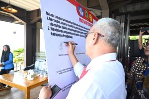 Acara dilanjutkan dengan penandatanganan pakta integritas sebagai komitmen bersama Kabupaten Kuningan menuju Kabupaten Pendidikan. (BagProkompim/SetdaKuningan)