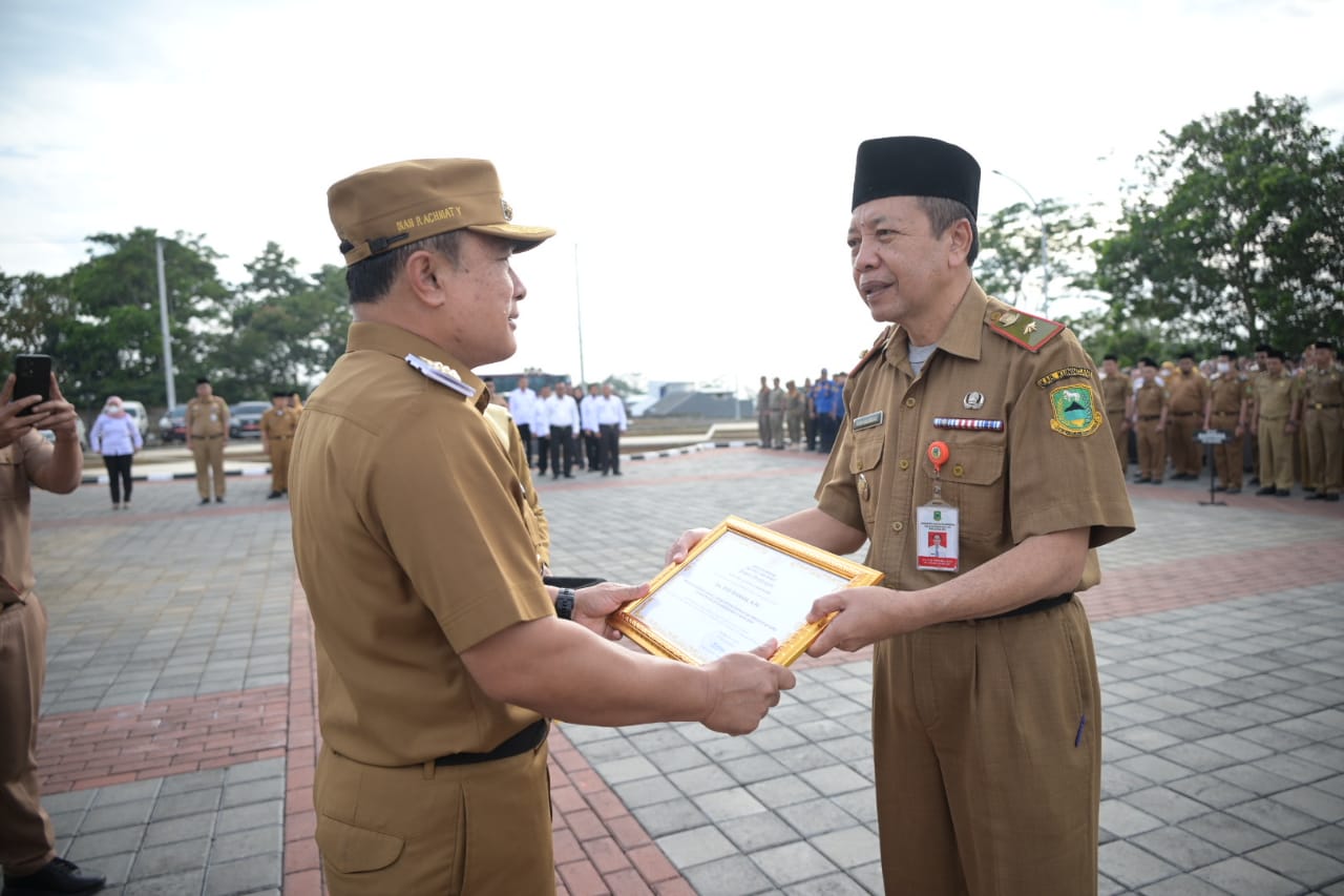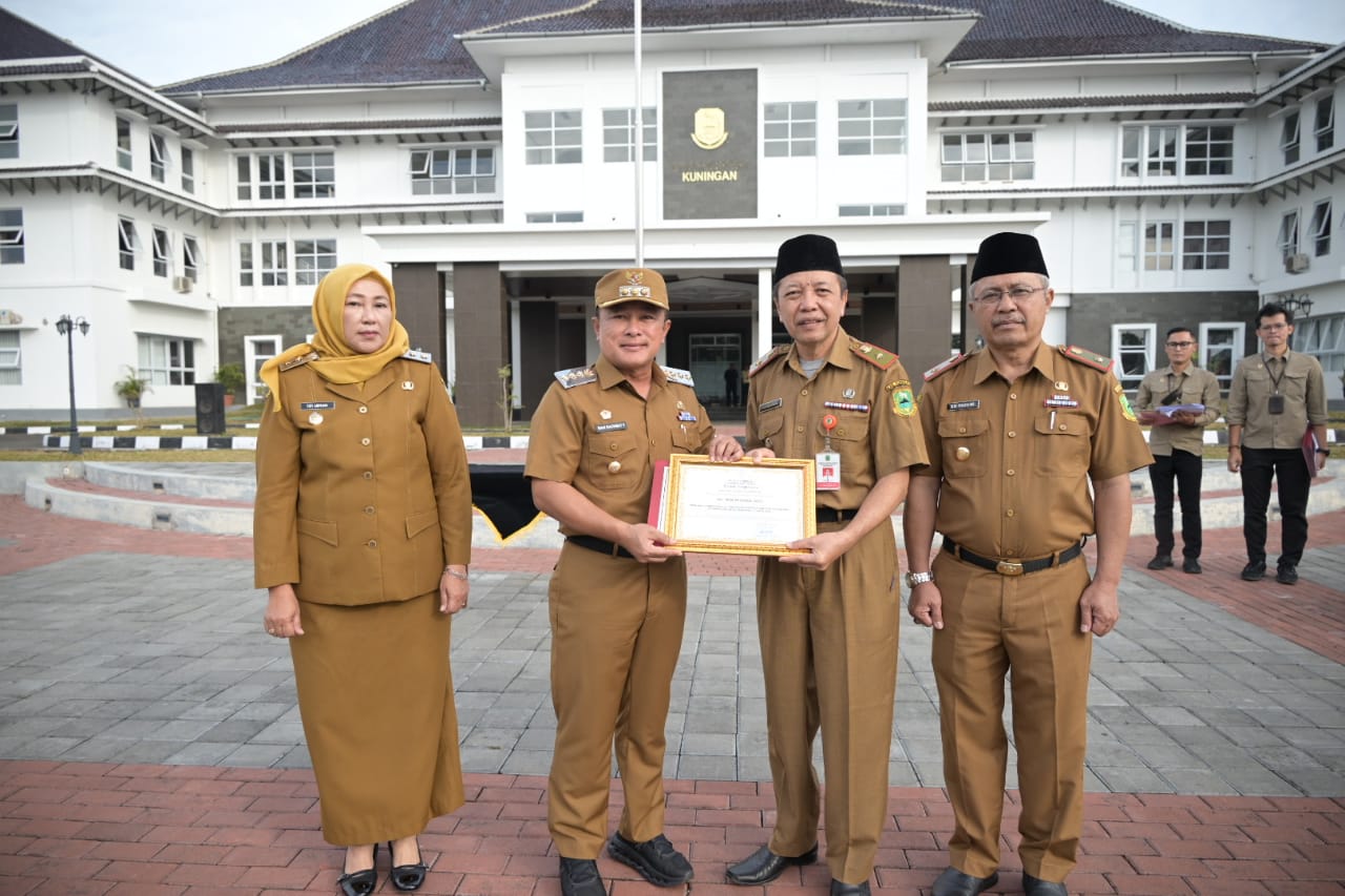 Hal itu diutarakan Bupati Kuningan, Dr. H. Dian Rachmat Yanuar, M.Si., ketika apel pagi sekaligus menyerahkan penghargaan kepada Kepala Disdukcapil Kuningan, Drs. Yudi Nugraha, M.Pd., di Halaman Setda, Komplek KIC, Senin (4/8/2025). Disaksikan Wakil Bupati, Pj Sekda, Asda, Staf Ahli, Kepala Organisasi Perangkat Daerah dan Peserta apel lainnya.