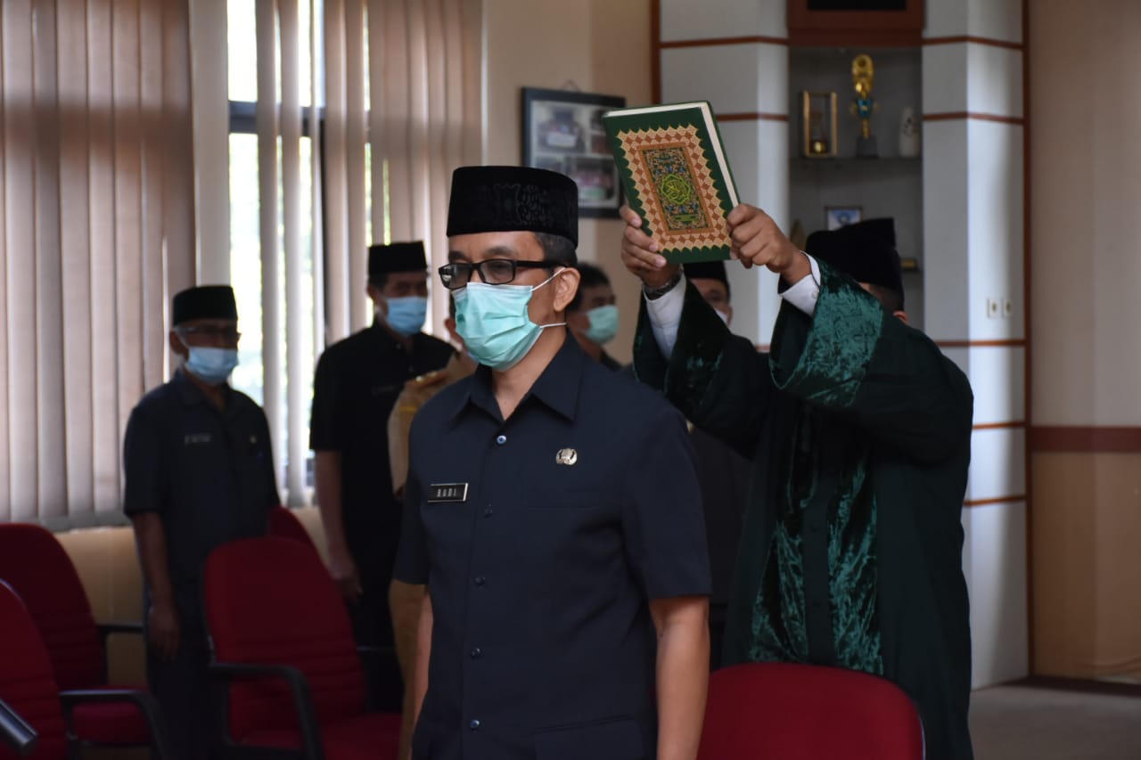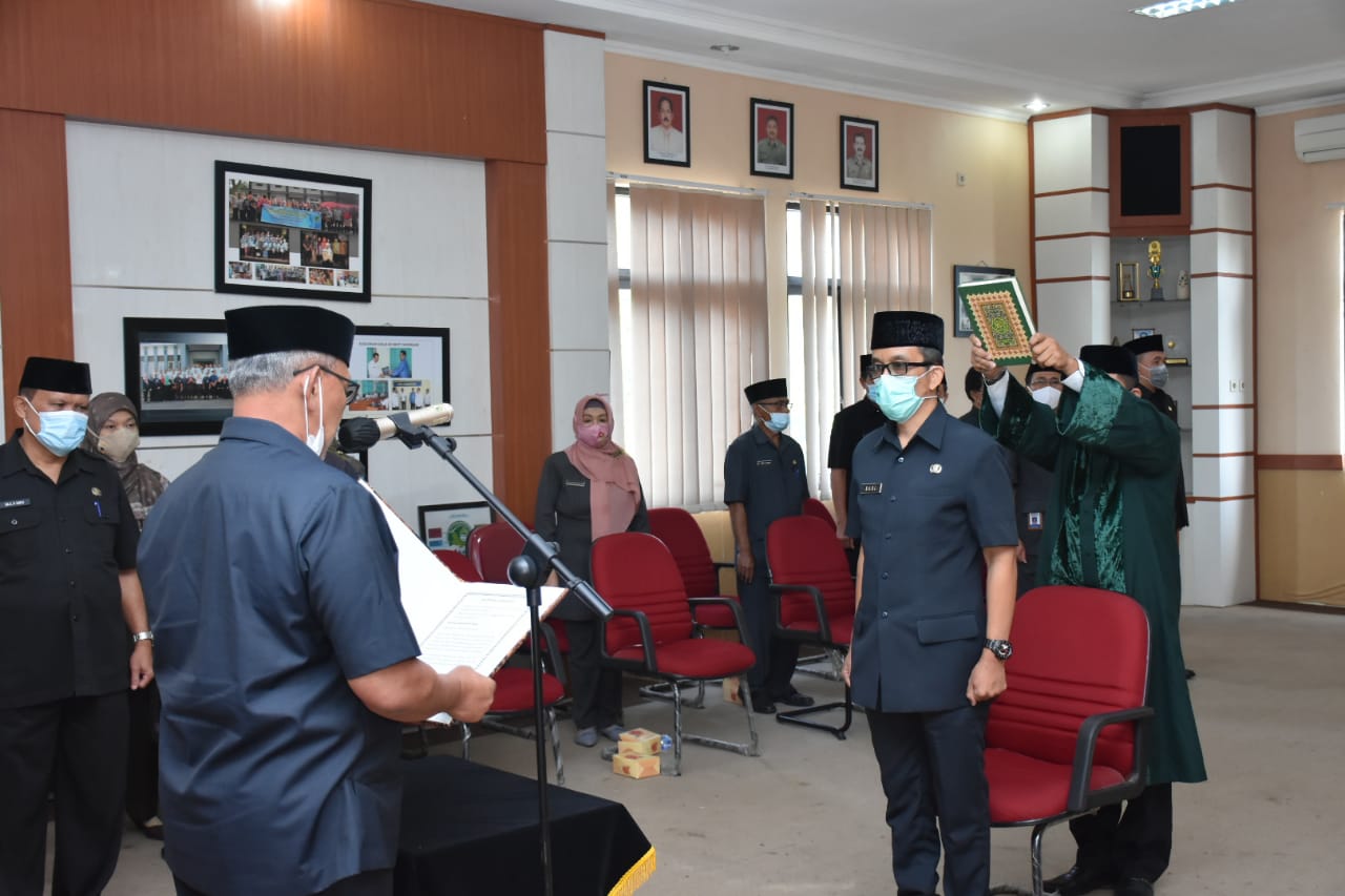 Kuningan ,- Bupati Kuningan H.Acep Purama, SH., MH.  Resmi Melantik Pejabat sekaligus Pengambilan Sumpah Jabatan Pimpinan Tinggi Pratama Kepada Dr. H. Mohamad Budi Alimudin, SE., M.Si Kepala Badan Kesatuan Bangsa dan Politik (KESBANGPOL) di Aula BKPSDM Kabupaten Kuningan, Senin (04/01/2021).