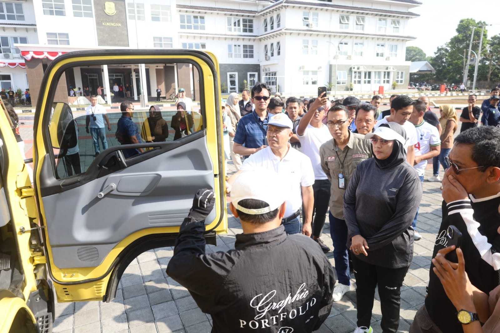 Bupati Dian juga mengajak para pelaku usaha di Kabupaten Kuningan untuk berpartisipasi aktif melalui program CSR, khususnya dalam membantu kebutuhan armada dan sarana pendukung pengelolaan sampah.