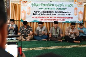 KUNINGAN – Memasuki hari Ke-25 Bulan Suci Ramadhan 1444 H, Bupati Kuningan, H. Acep Purnama, S.H., M.H menghadiri acara Gebyar Santunan Ramadhan 1444H, bertajuk “Talikasih Yatim Dan Piatu Bersama Kita Berbagi dan Santunan Anak Yatim” bertempat di Masjid Baiturahman desa Bandorasakulon, Minggu (16/04/2023).