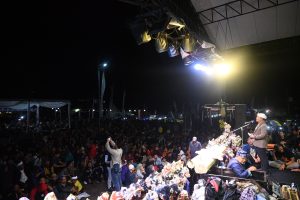 “Bapak ibu, tadi jalan menuju kesini rusak parah ya.. Insya allah nanti saya akan perbaiki. Nanti pekan depan saya launching Kick Off perbaikan jalan di 143 titik se-Kabupaten Kuningan” Ujar Bupati di sambut tepuk tangan meriah dari ribuan warga yang menonton.