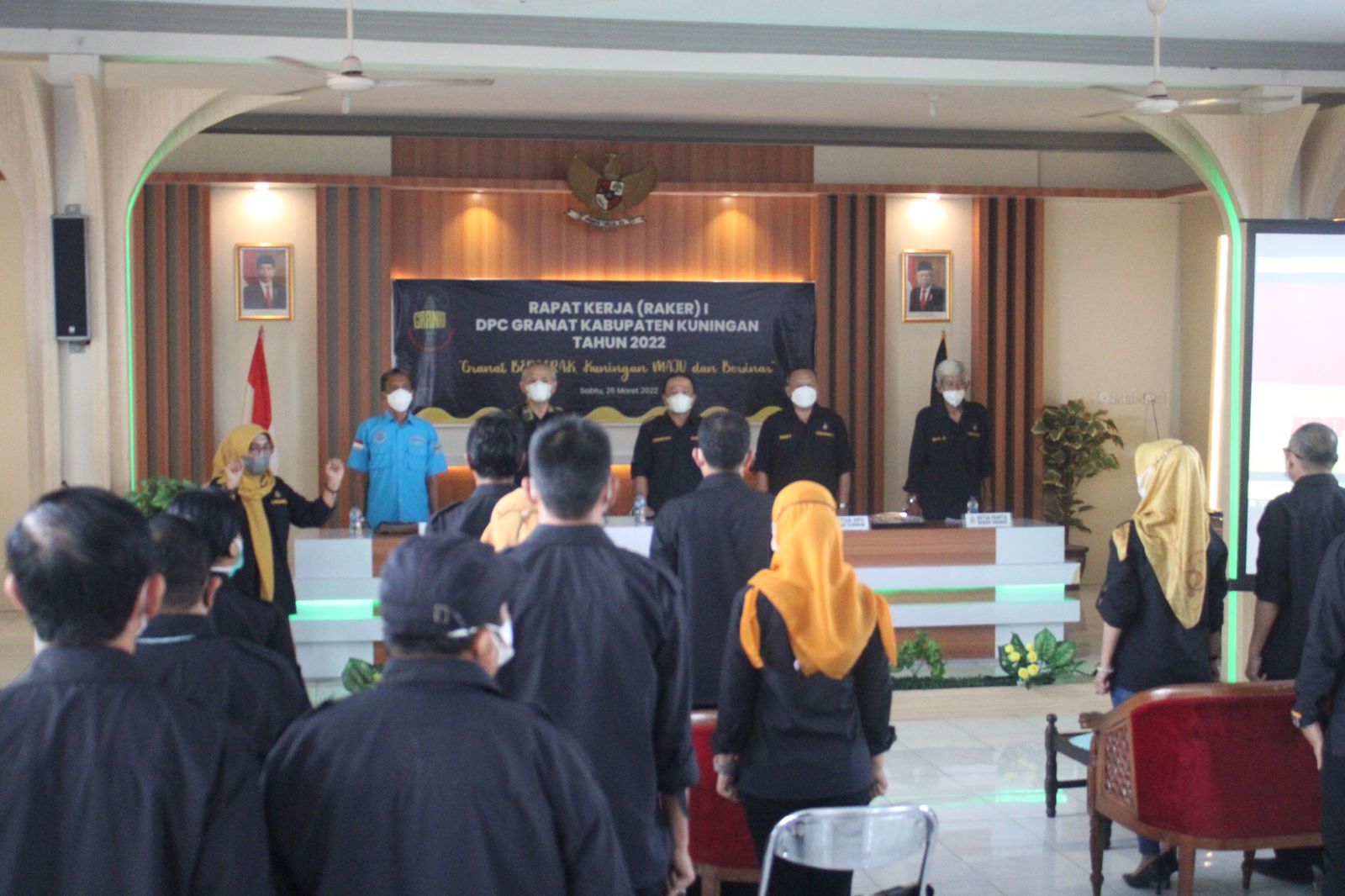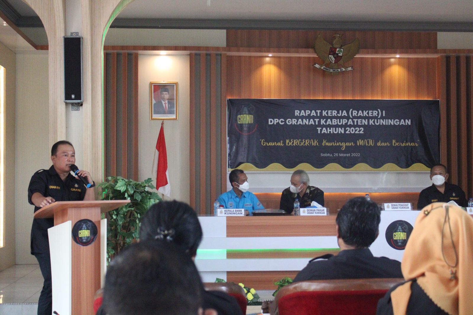 Sementara, Ketua DPC Granat Kuningan Drs. Dudy Budiana, M.Si. menegaskan bahwa Raker ini harus menghasilkan program kerja DPC Granat Kabupaten Kuningan yang lebih baik serta dapat diaplikasikan dalam kegiatan yang menghasilkan rekomendasi dan rencana aksi sampai akhir kepengurusan DPC Granat periode 2022 – 2026 berakhir untuk Kuningan Bersih Narkoba (BERSINAR).