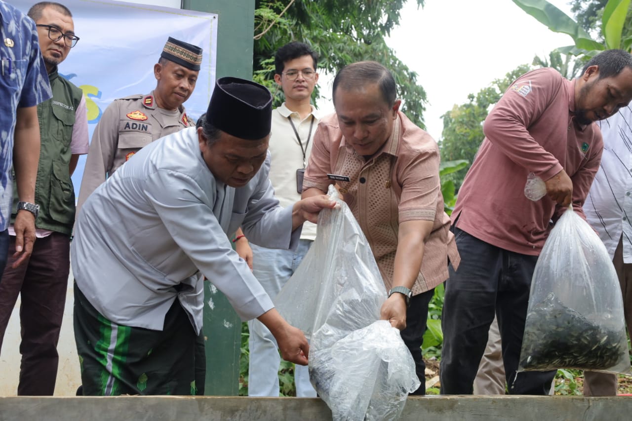 “Hari ini kami menebarkan benih ikan nila di pondok pesantren sebagai bagian dari upaya membangun ekonomi produktif santri juga. Mereka tidak hanya belajar ilmu agama, tetapi juga didorong untuk mandiri dalam usaha ekonomi,” ujarnya.
