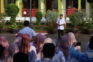 Apel pagi yang dirangkaikan dengan halal bihalal ini menjadi bagian dari program 100 Hari Kerja. Di hadapan para pendidik dan tenaga kependidikan, Bupati menekankan pentingnya peran guru sebagai figur yang menginspirasi.